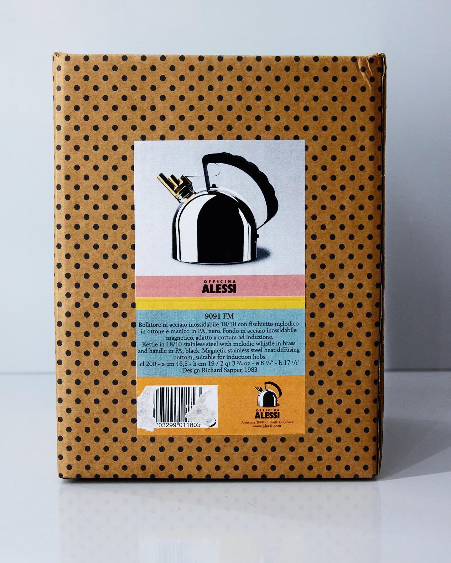 The 9091 Kettle is an iconic object that transforms everyday ritual into a sensory experience. Its polished stainless steel body is crowned by a brass whistle that produces a harmonious melody when the water boils, rather than a traditional sharp sound. A perfect balance of function, innovation, and poetry, it remains one of Alessi’s most celebrated designs.