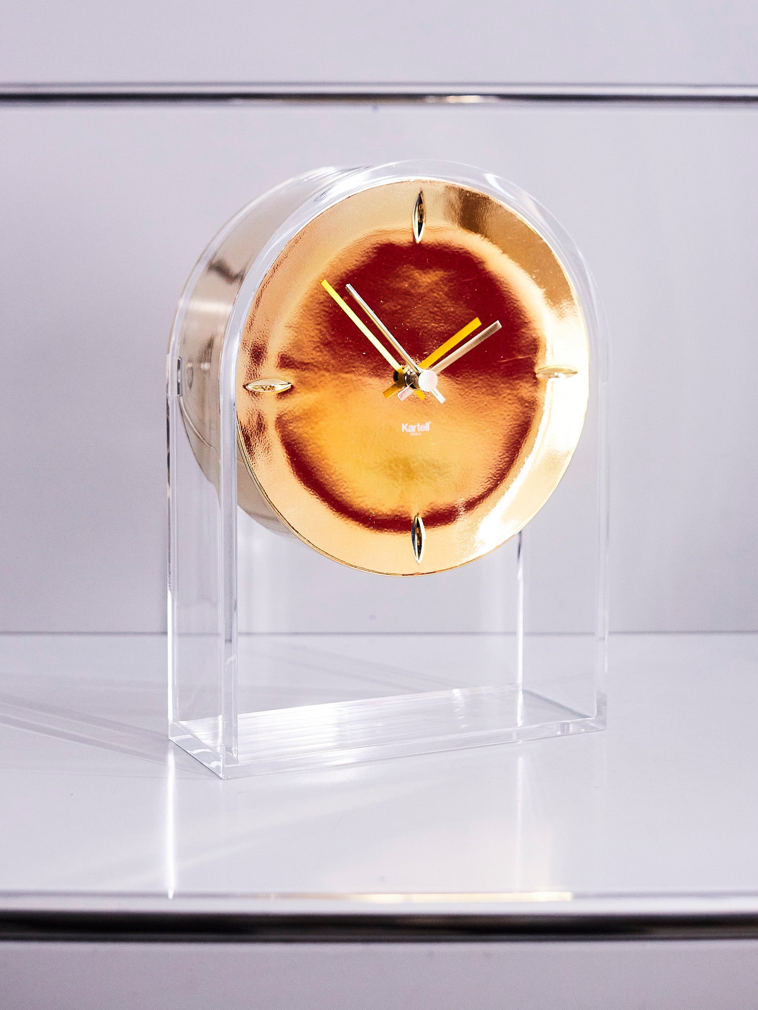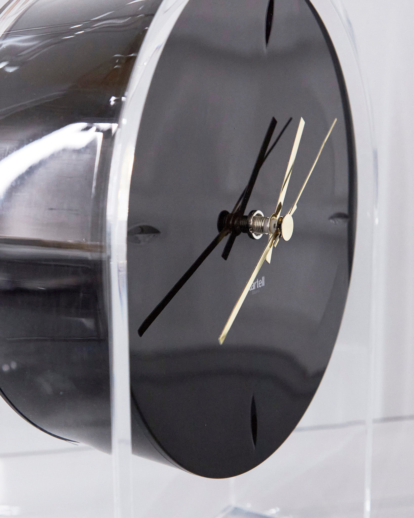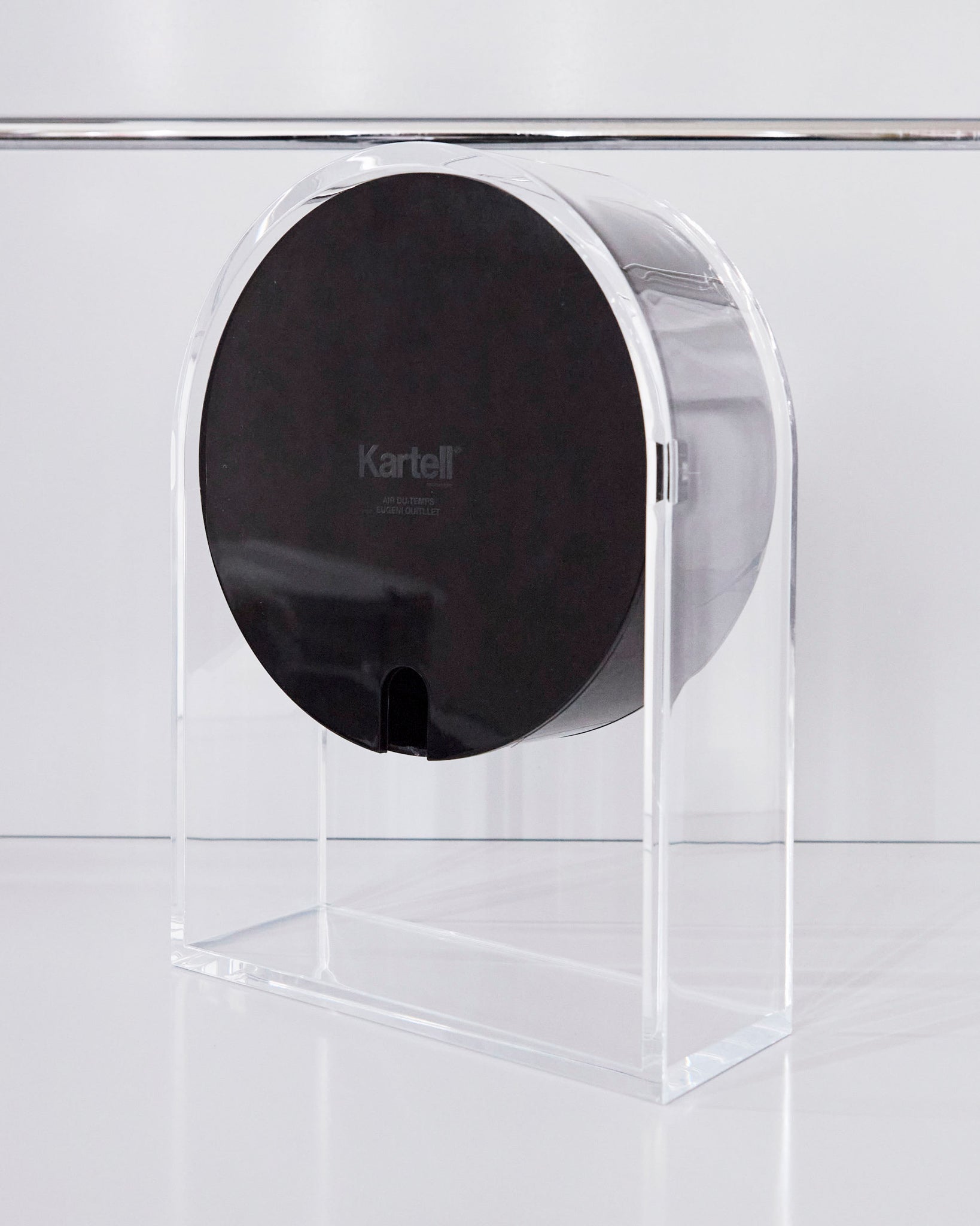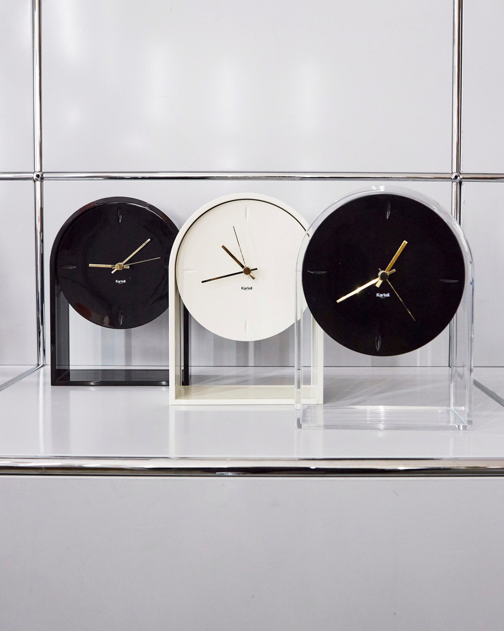 The Air du Temps clock, designed by Eugeni Quitllet, captures time with a lightness that feels almost suspended. Its design plays with emptiness and reflection: a smooth, polished surface—available in transparent, tinted, or metallic finishes—frames delicate hands that seem to float. With its minimalist silhouette and elegant presence, this clock adds a modern touch without overpowering the room. Simple, refined, and poetic—Air du Temps turns time into décor.