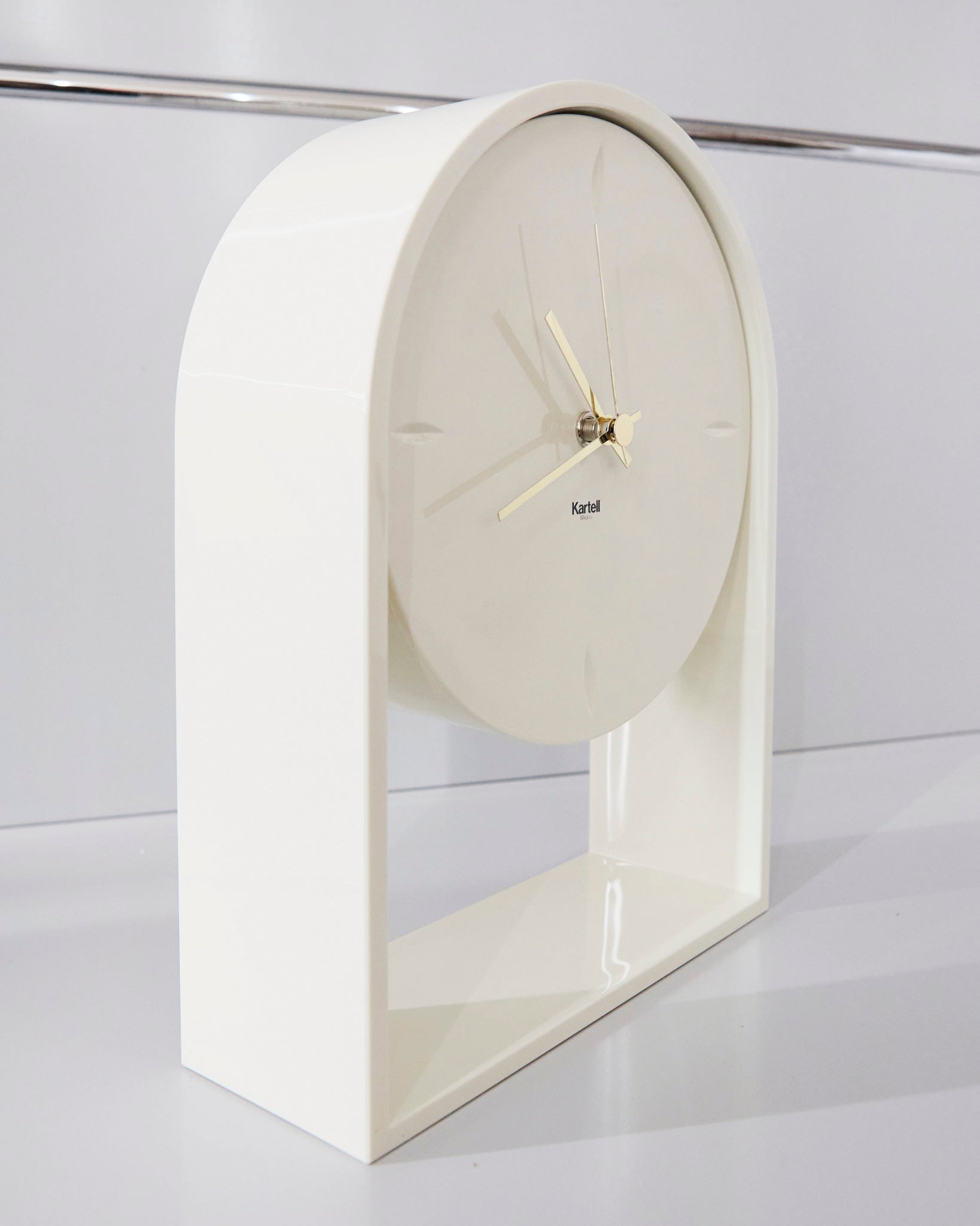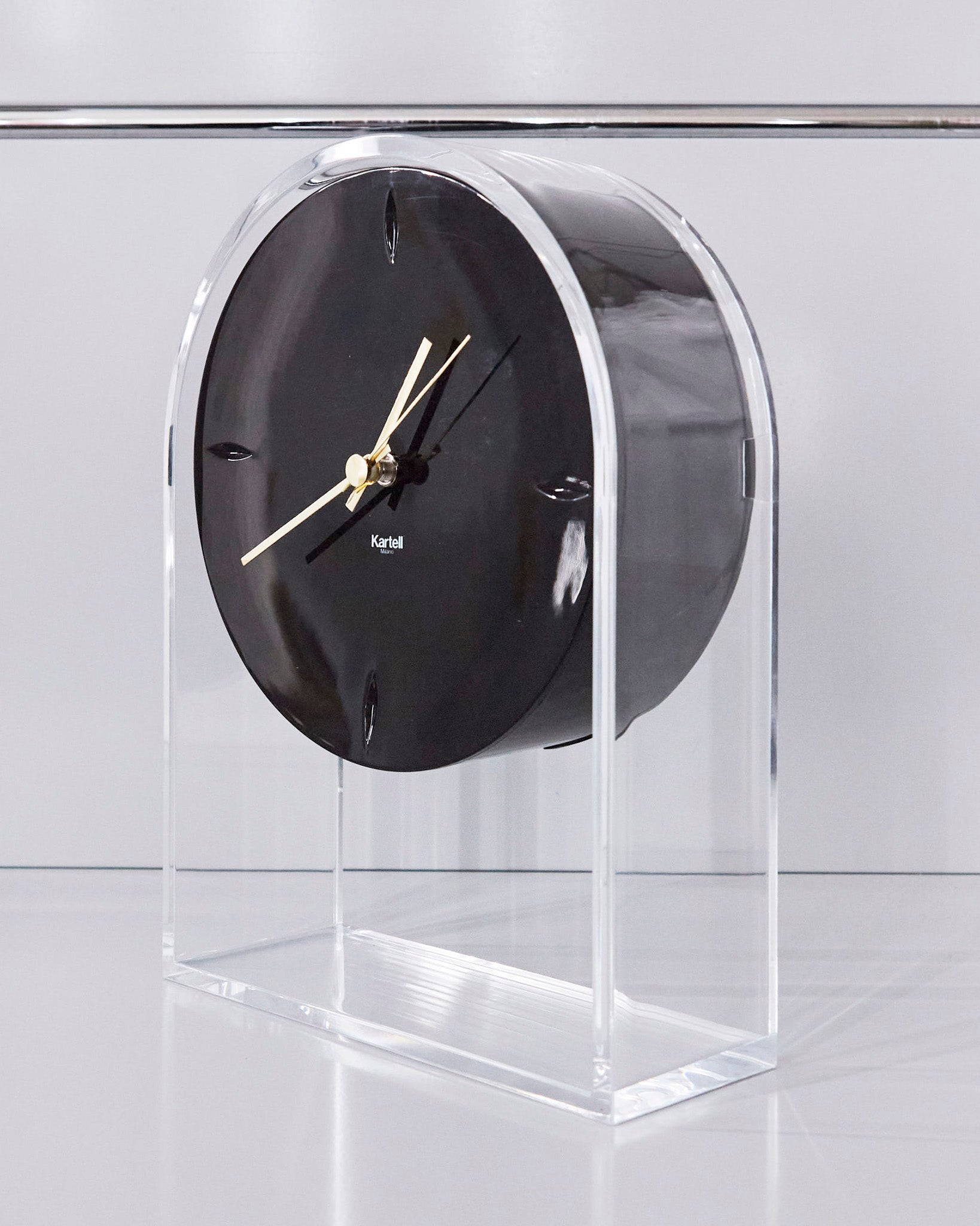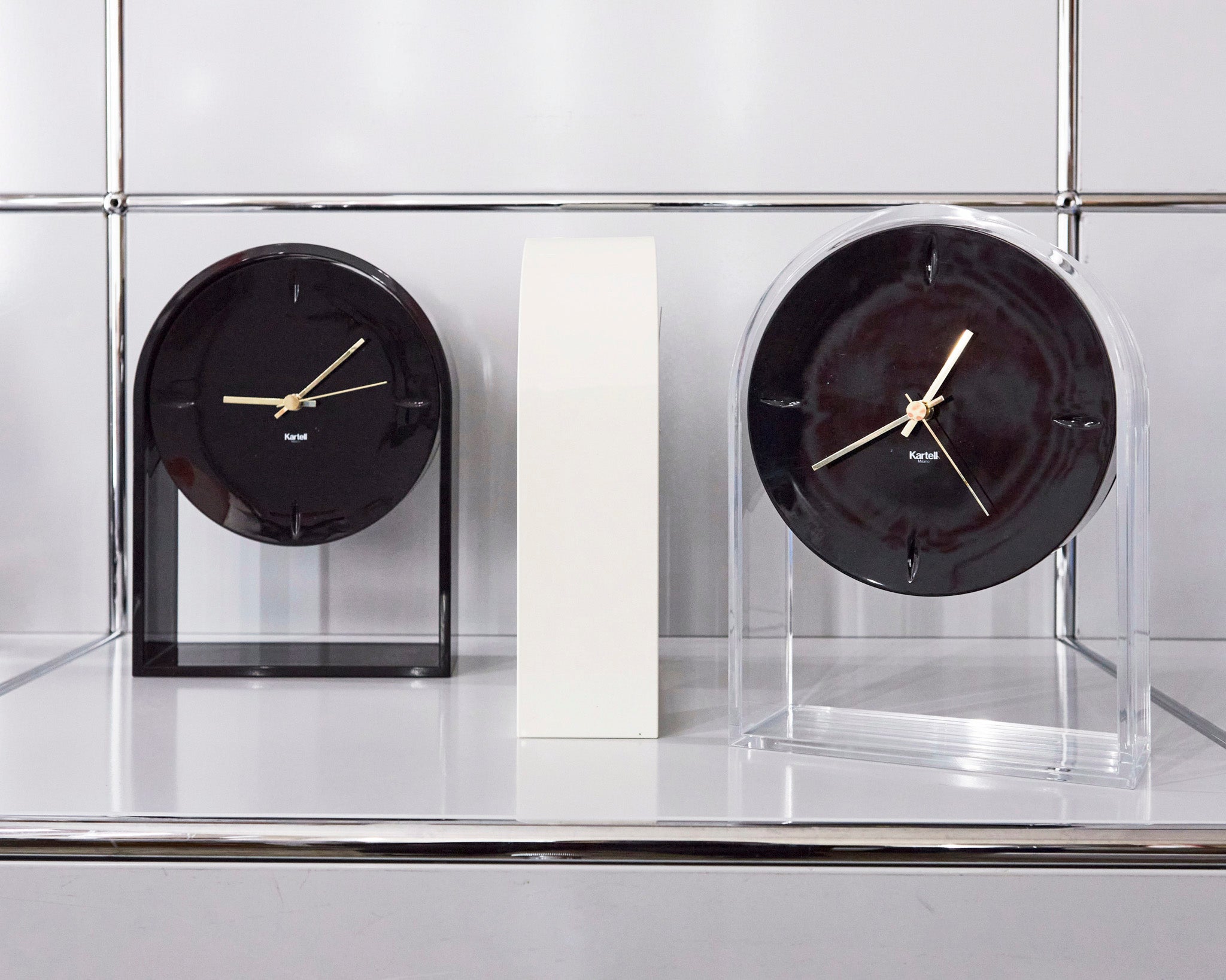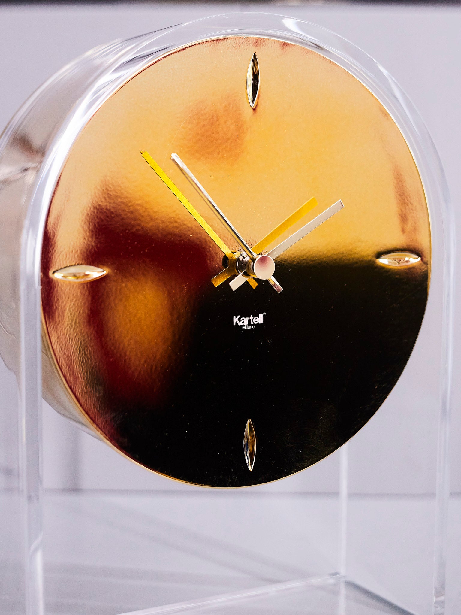 The Air du Temps clock, designed by Eugeni Quitllet, captures time with a lightness that feels almost suspended. Its design plays with emptiness and reflection: a smooth, polished surface—available in transparent, tinted, or metallic finishes—frames delicate hands that seem to float. With its minimalist silhouette and elegant presence, this clock adds a modern touch without overpowering the room. Simple, refined, and poetic—Air du Temps turns time into décor.