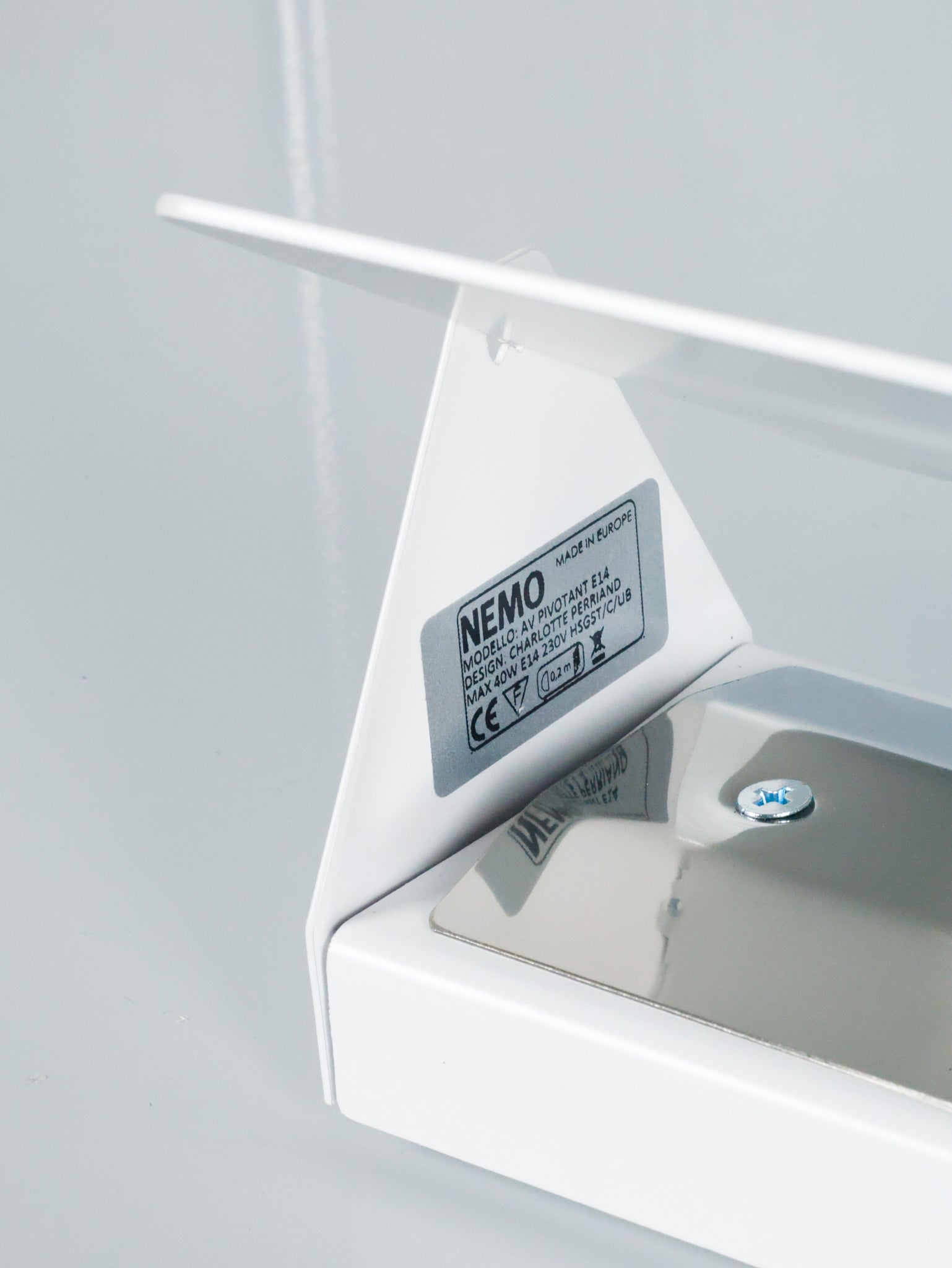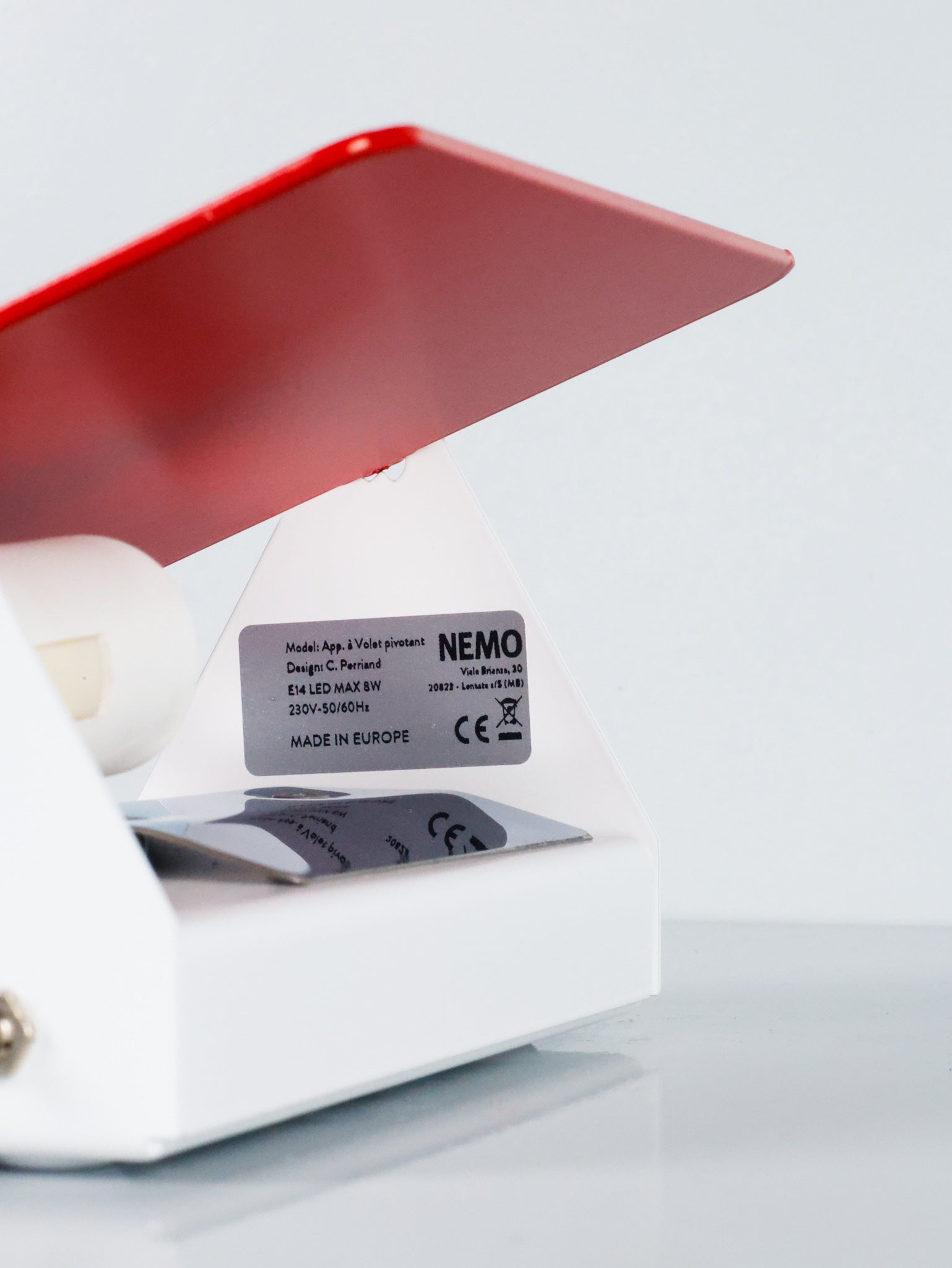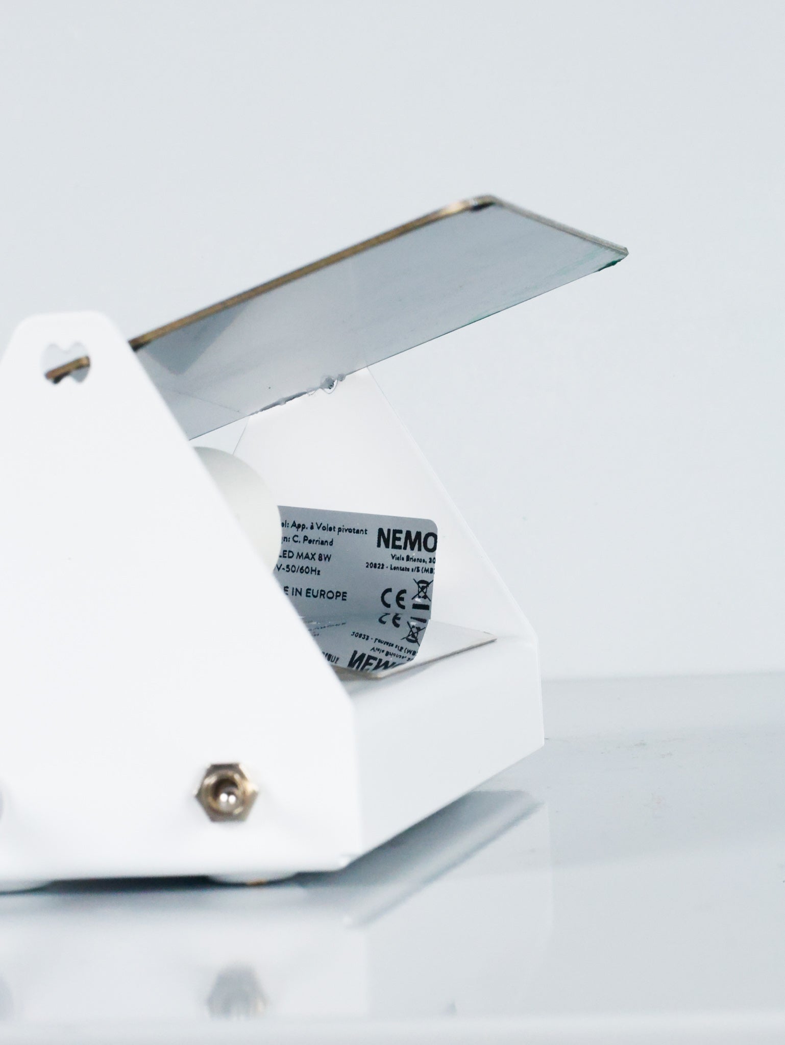 The Applique à Volet Pivotant, designed by Charlotte Perriand for Nemo, is a perfect example of her functional and poetic approach to design. Featuring an adjustable metal shade that pivots to direct light as desired, it allows for both diffused and focused illumination. Its clean geometry and subtle play of light and shadow make it a timeless piece that blends architecture and utility with elegance.