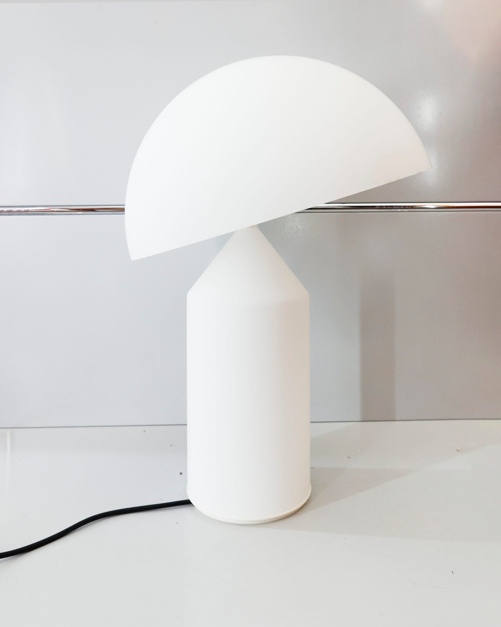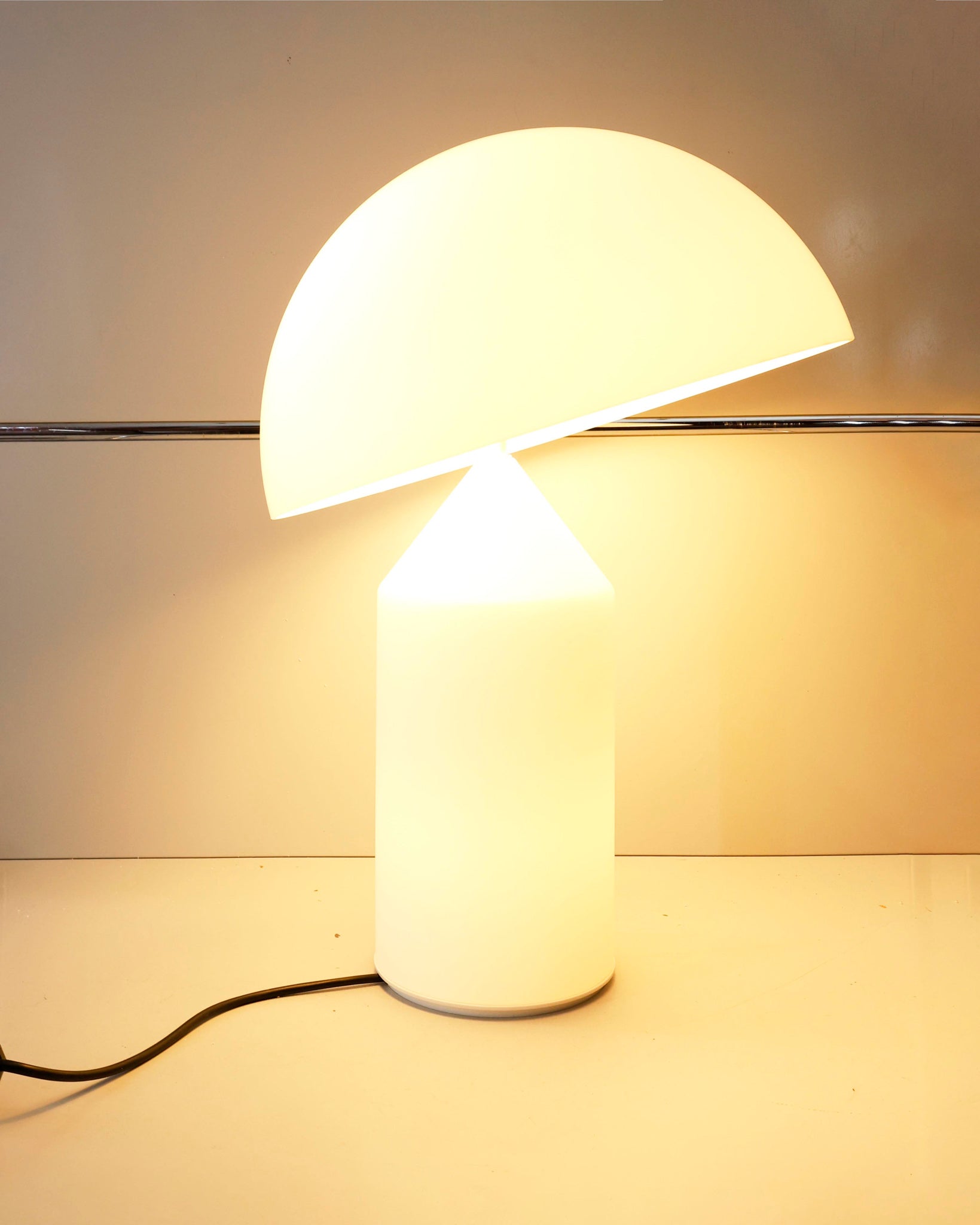 The Atollo lamp, designed by Vico Magistretti in 1977 for Oluce, is one of the most iconic pieces in lighting design. Its geometric composition —a cylinder, a cone, and a hemisphere— creates a perfectly balanced and sculptural silhouette. Beyond its function, Atollo stands as a symbol of modern elegance, offering a warm, atmospheric light that enhances any interior.