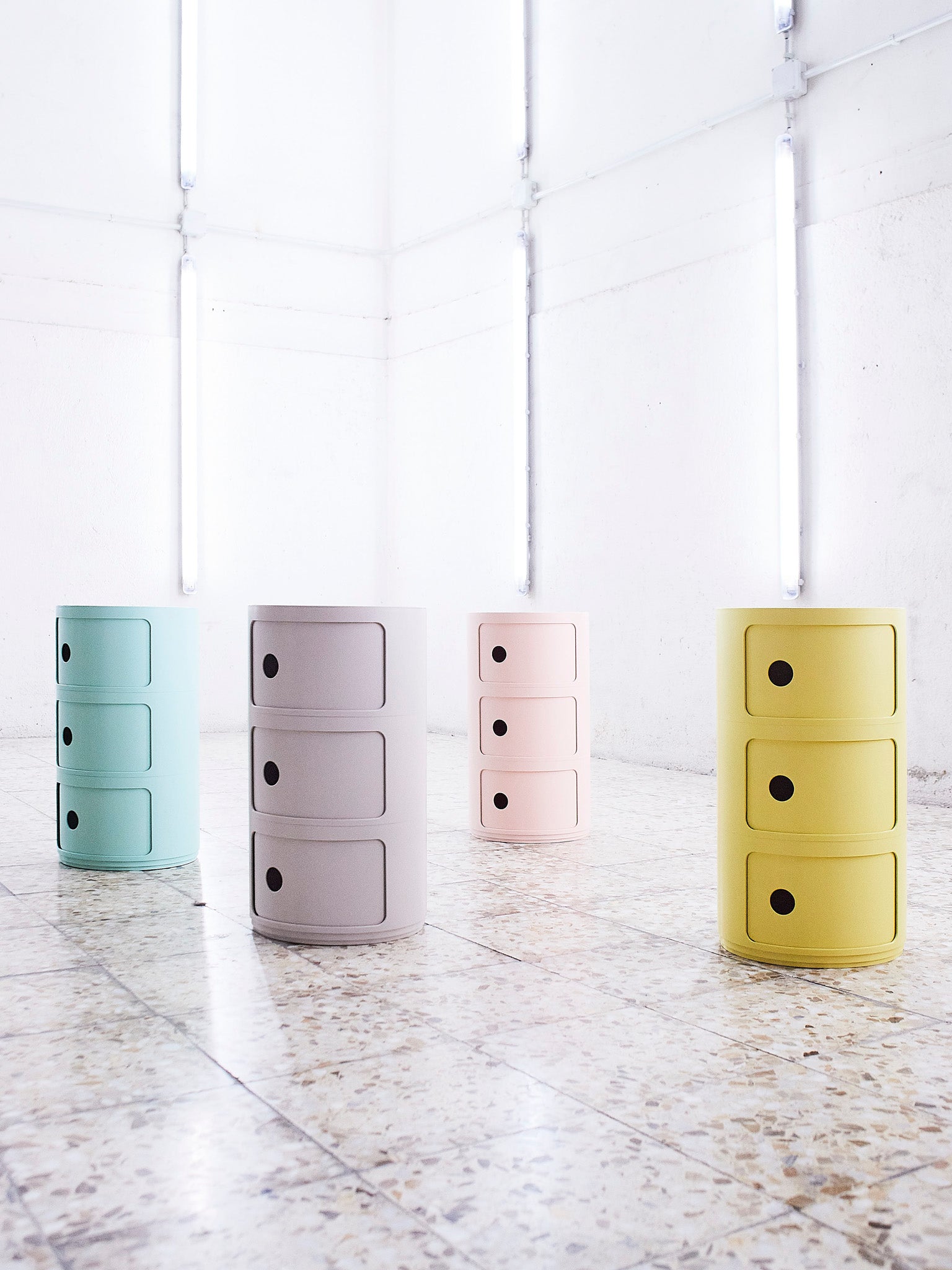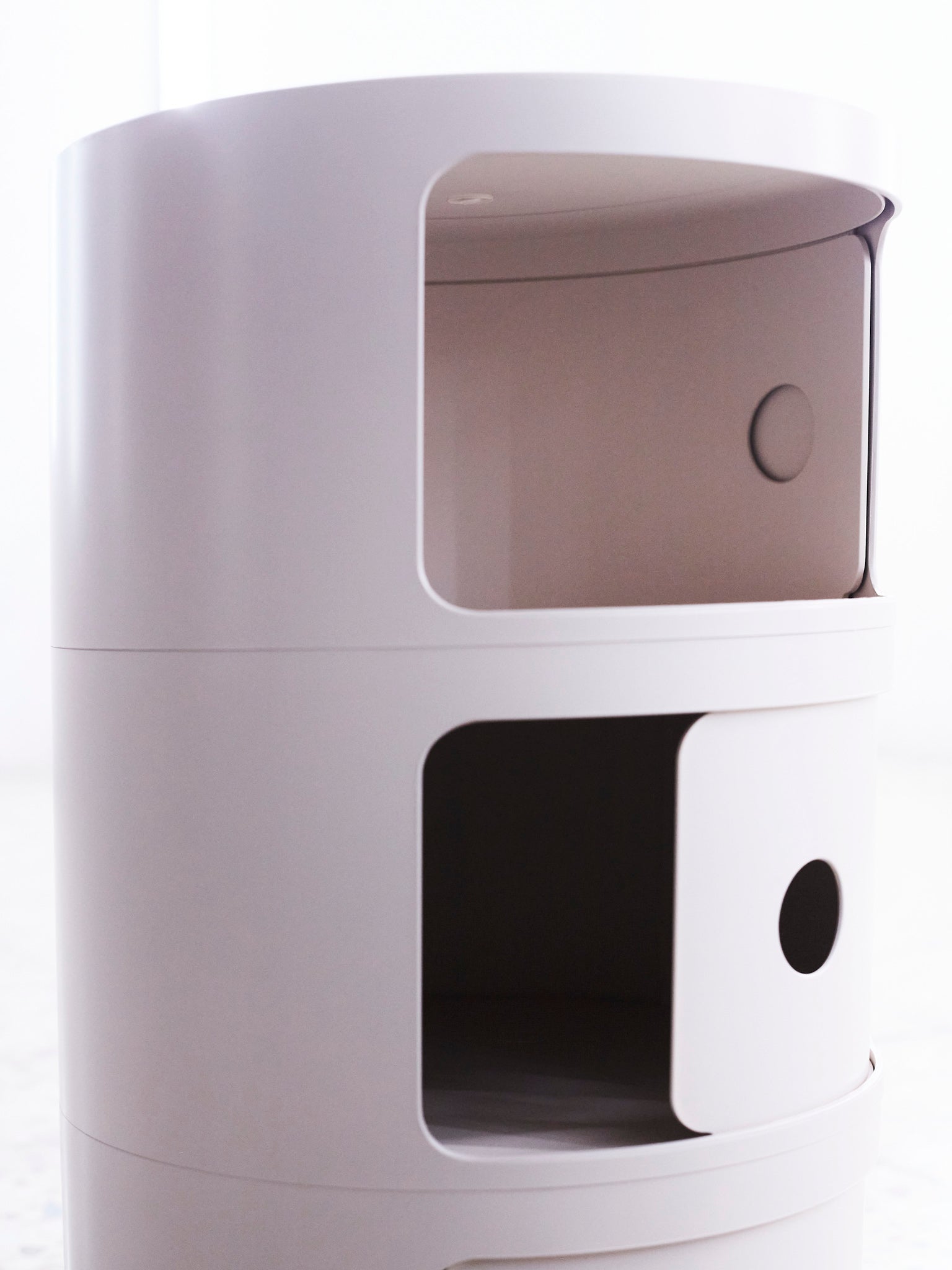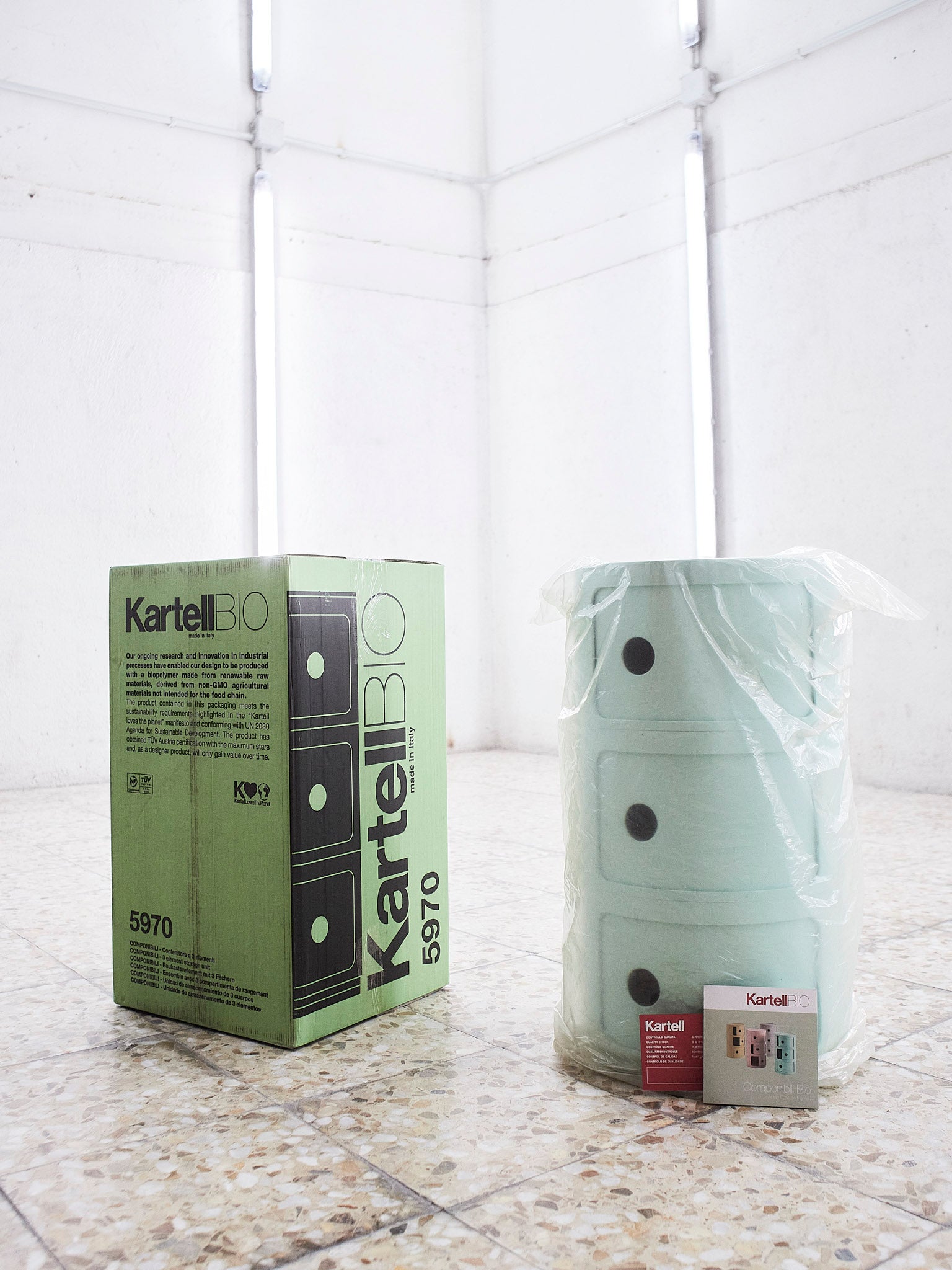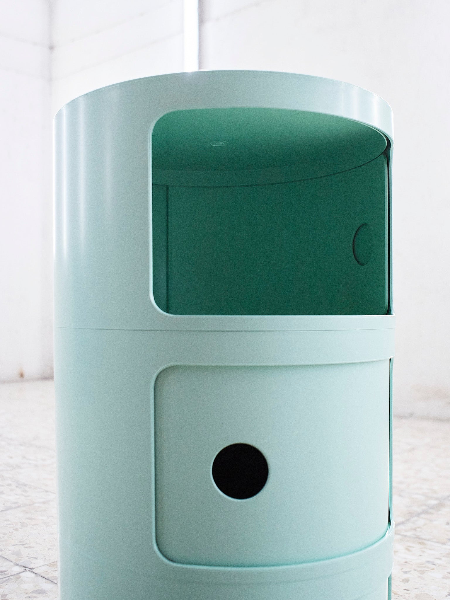 Componibili is the storage furniture that has symbolized Kartell for over fifty years. It is manufactured in a new version with a revolutionary sustainable material, using a biopolymer made from raw materials derived from renewable sources, of agricultural origin, non-GMO, and not intended for the food chain.