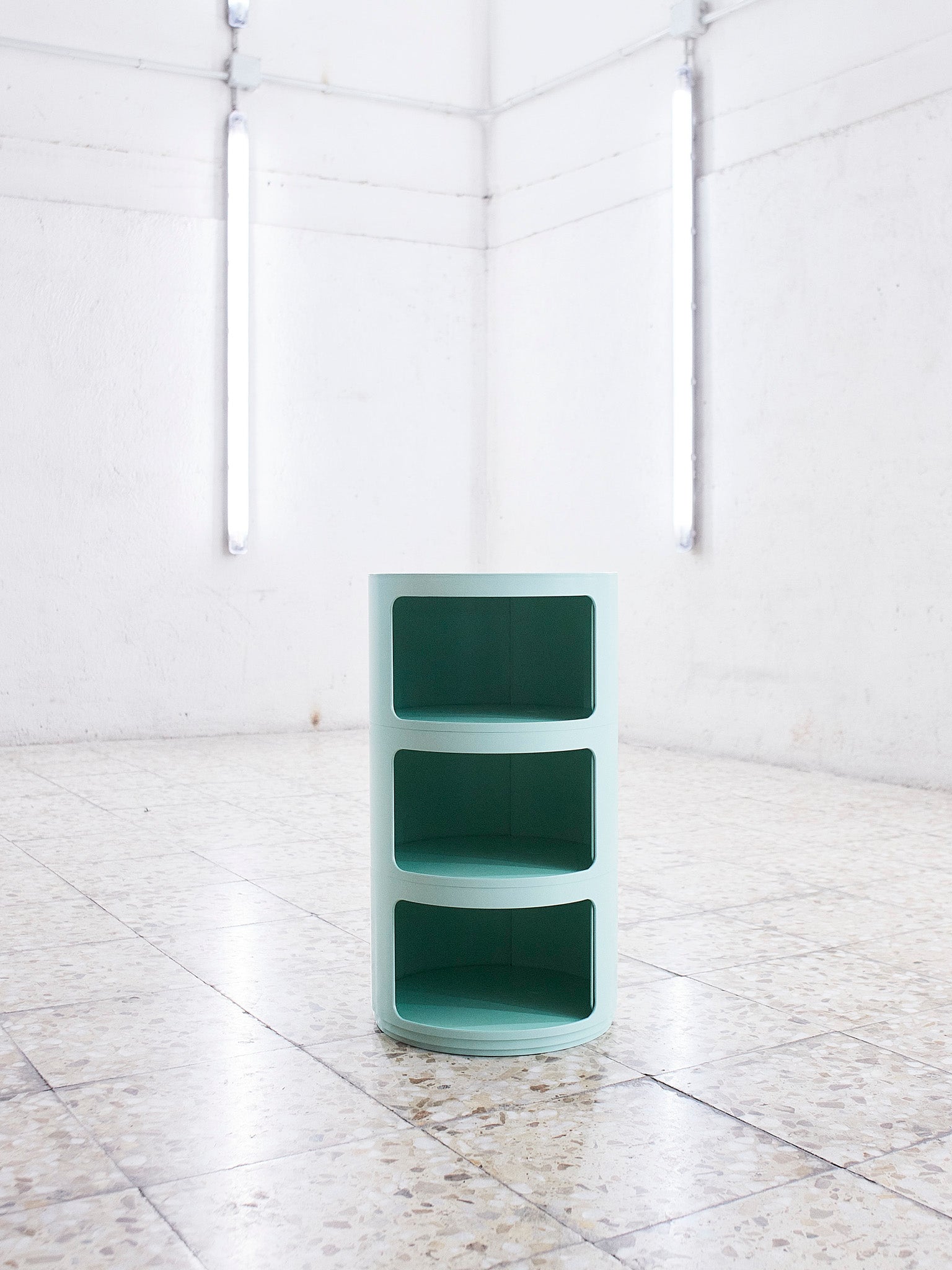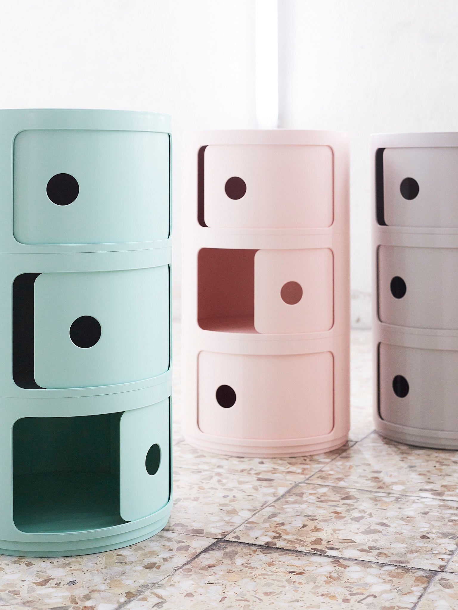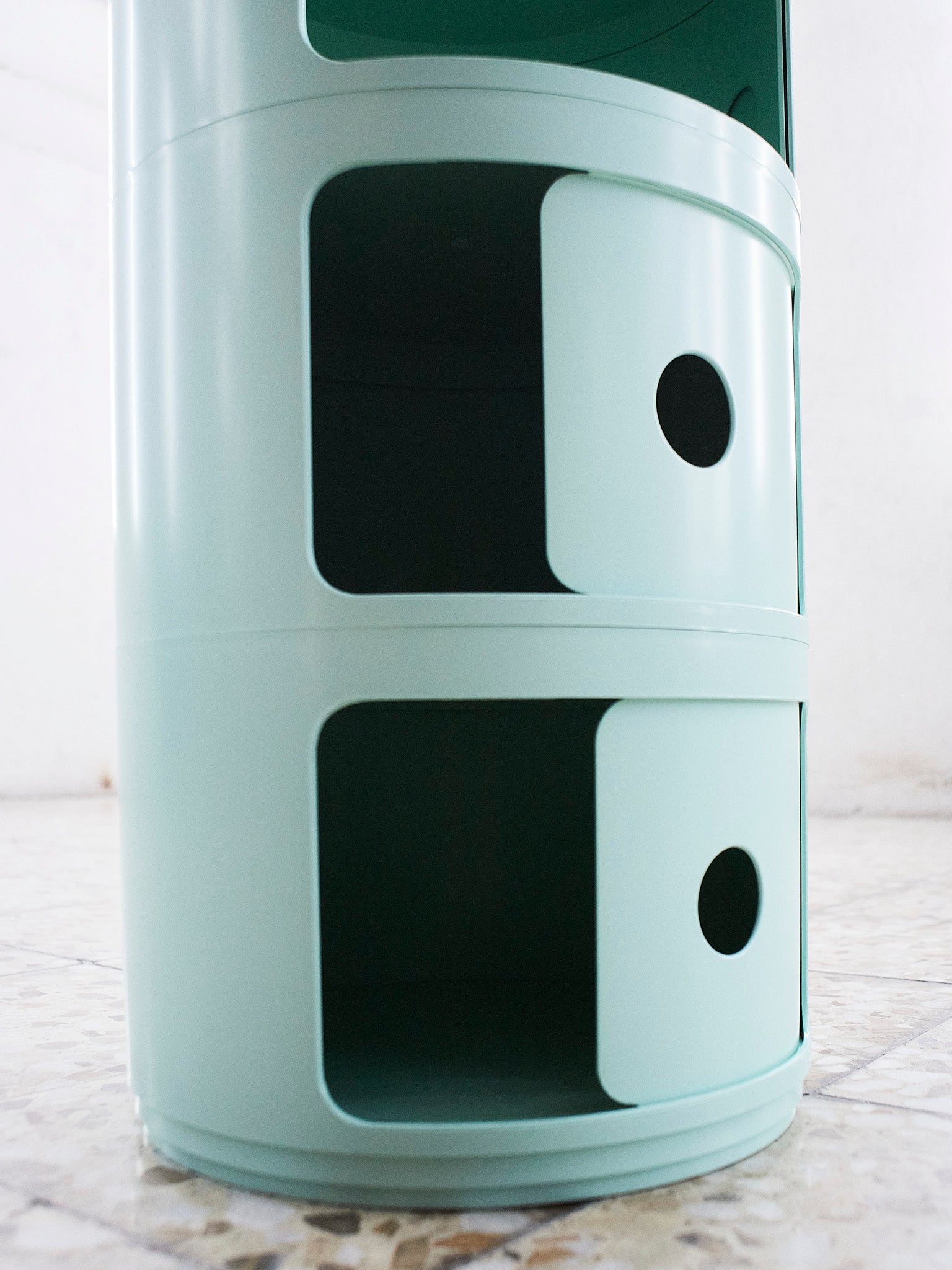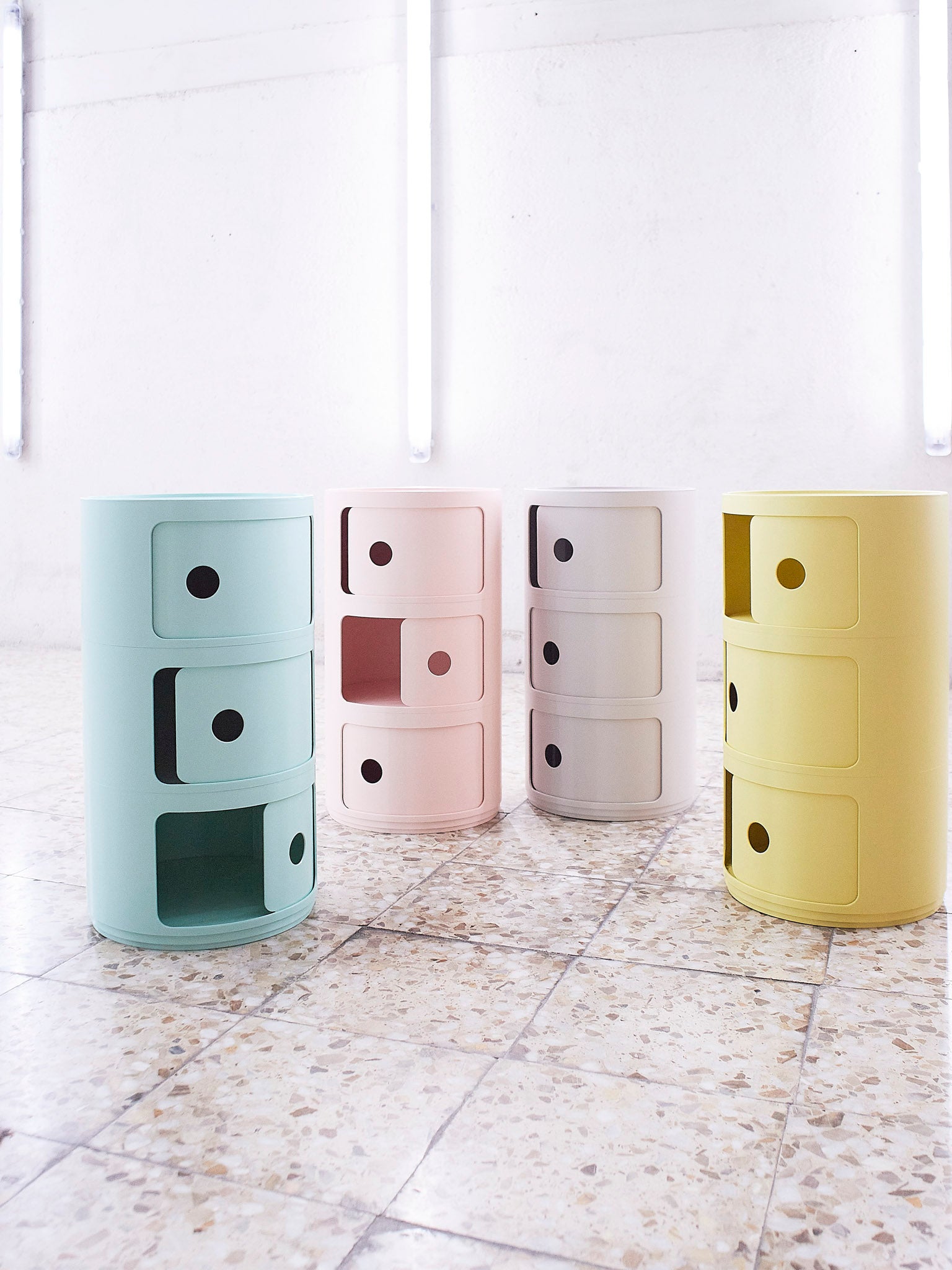 Componibili is the storage furniture that has symbolized Kartell for over fifty years. It is manufactured in a new version with a revolutionary sustainable material, using a biopolymer made from raw materials derived from renewable sources, of agricultural origin, non-GMO, and not intended for the food chain.