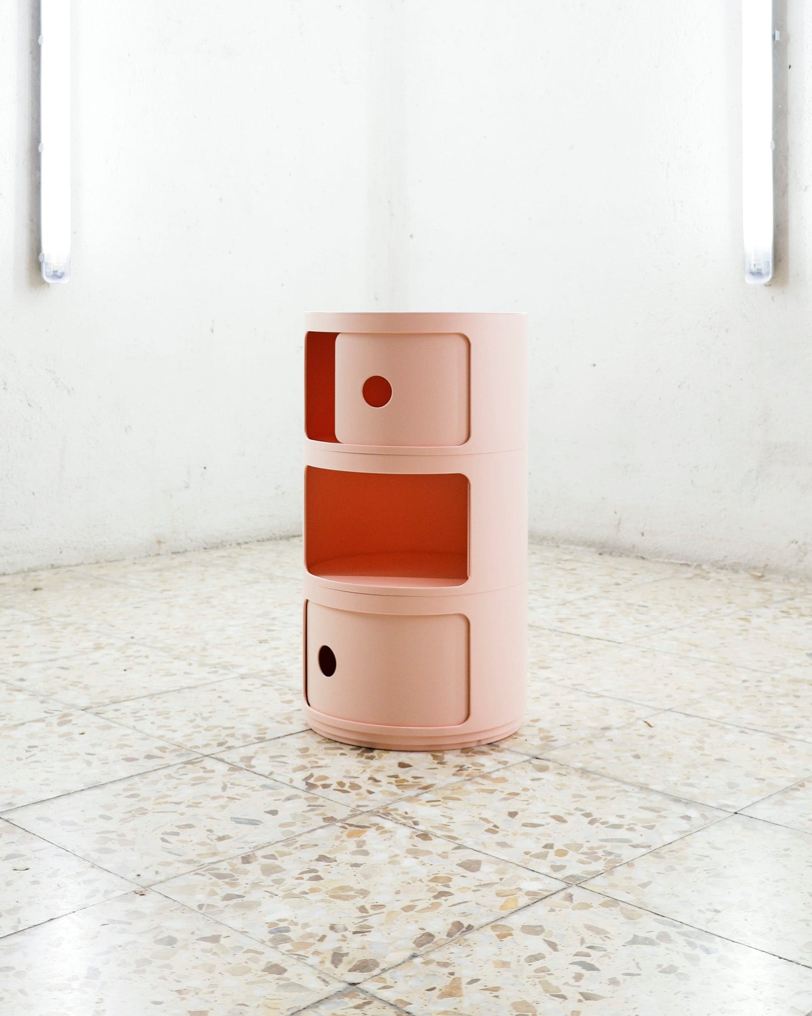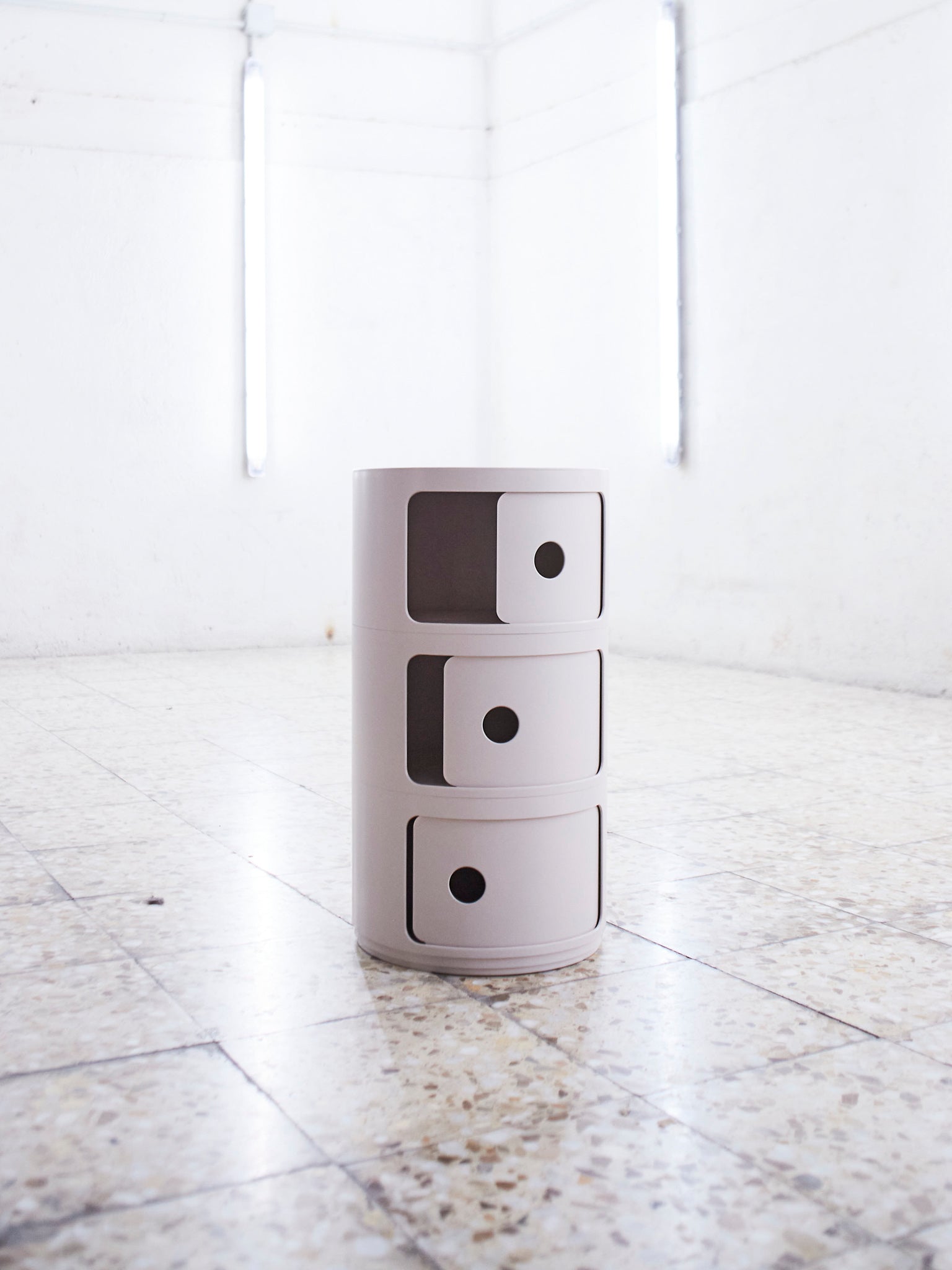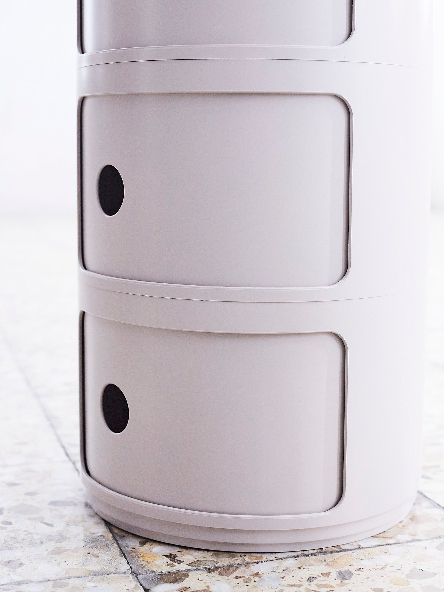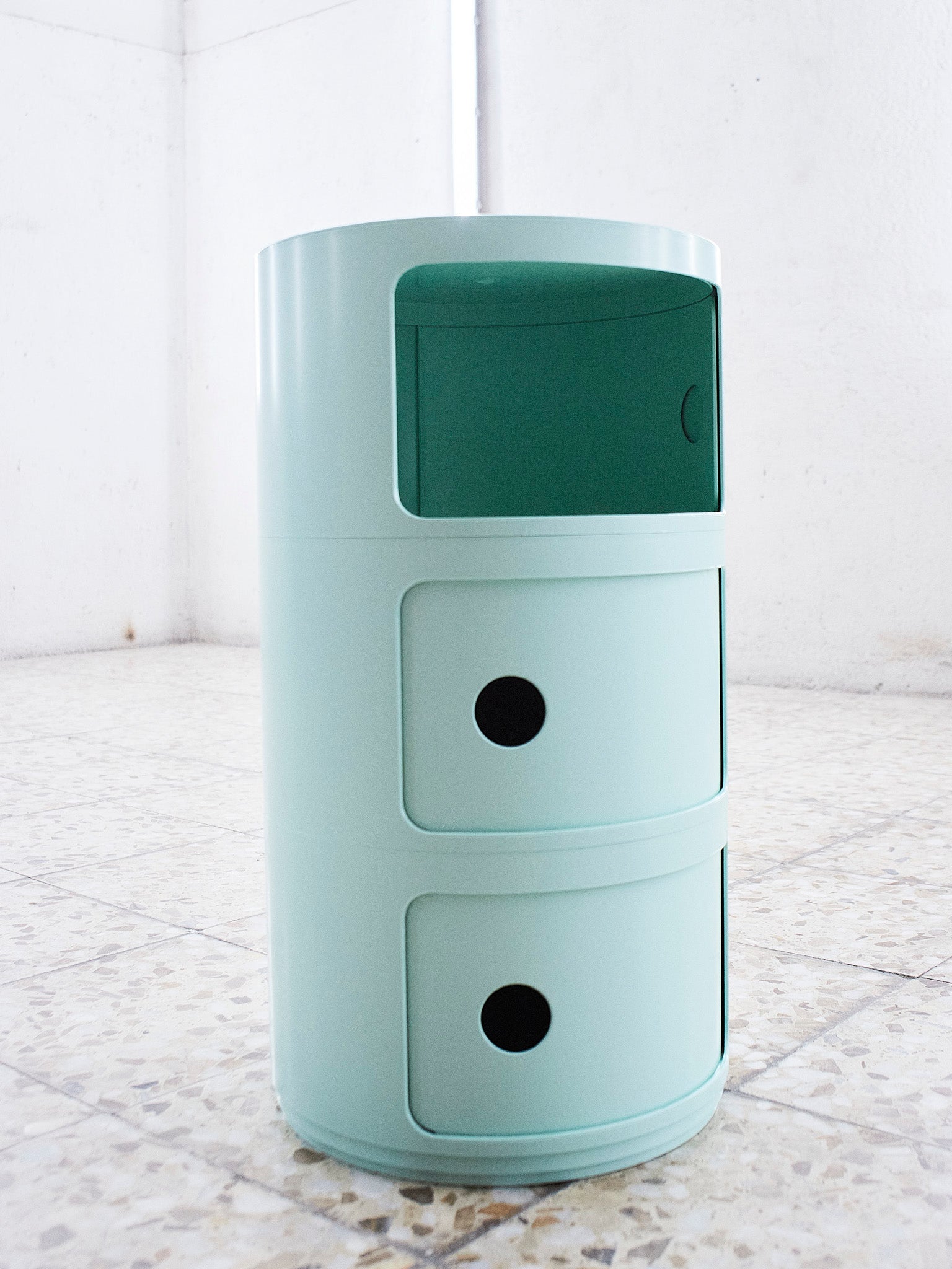 Componibili is the storage furniture that has symbolized Kartell for over fifty years. It is manufactured in a new version with a revolutionary sustainable material, using a biopolymer made from raw materials derived from renewable sources, of agricultural origin, non-GMO, and not intended for the food chain.
