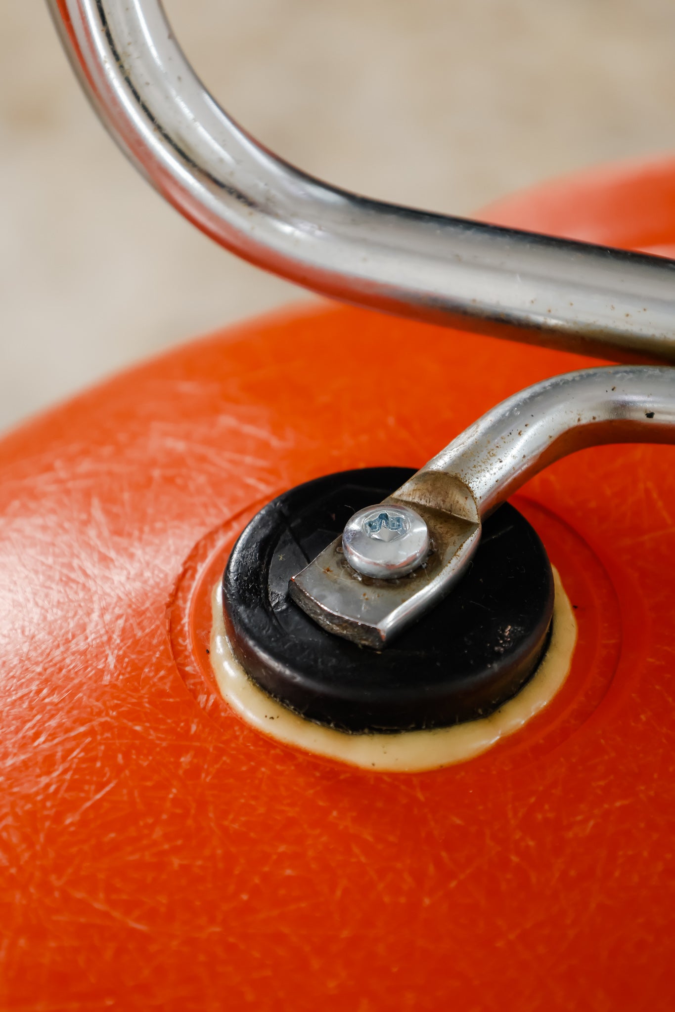 | Materials | Orange finish molded fiberglass, chromed steel base |
