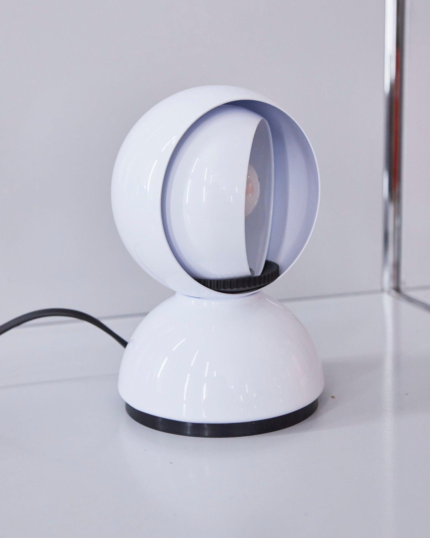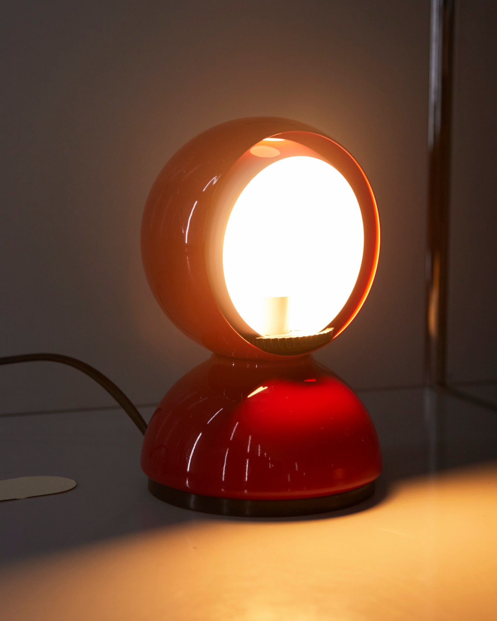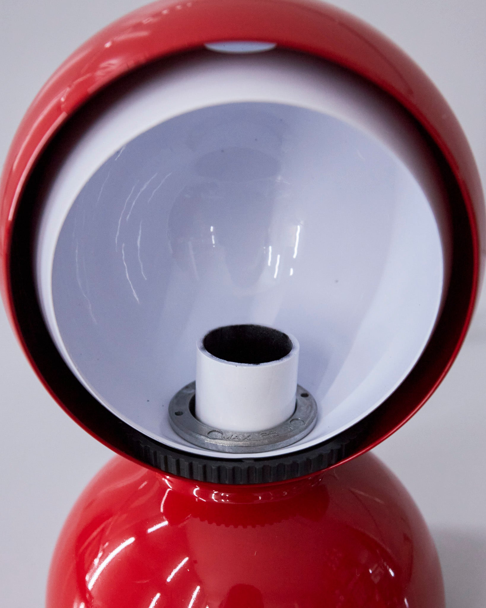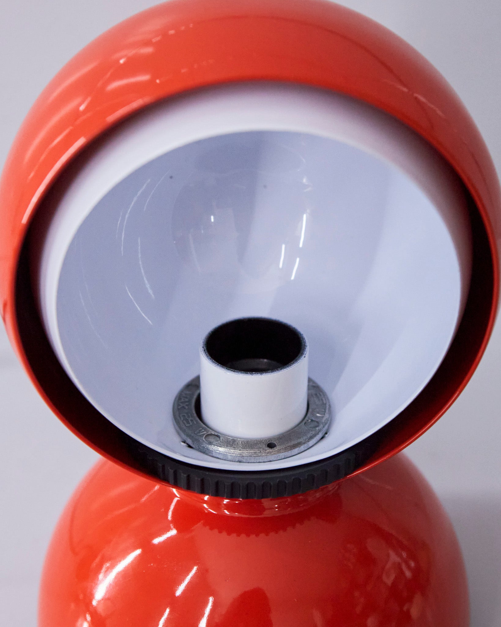 An Italian design icon awarded the Compasso d’Oro in 1967. Its genius lies in a rotating inner shade that allows the user to “eclipse” the light source, adjusting between direct and diffused illumination. Composed of overlapping hemispheres with a fixed outer shell and a movable inner shell, it can be used as a table or wall lamp. It is available in multiple finishes including classic painted metal colours and premium PVD options.