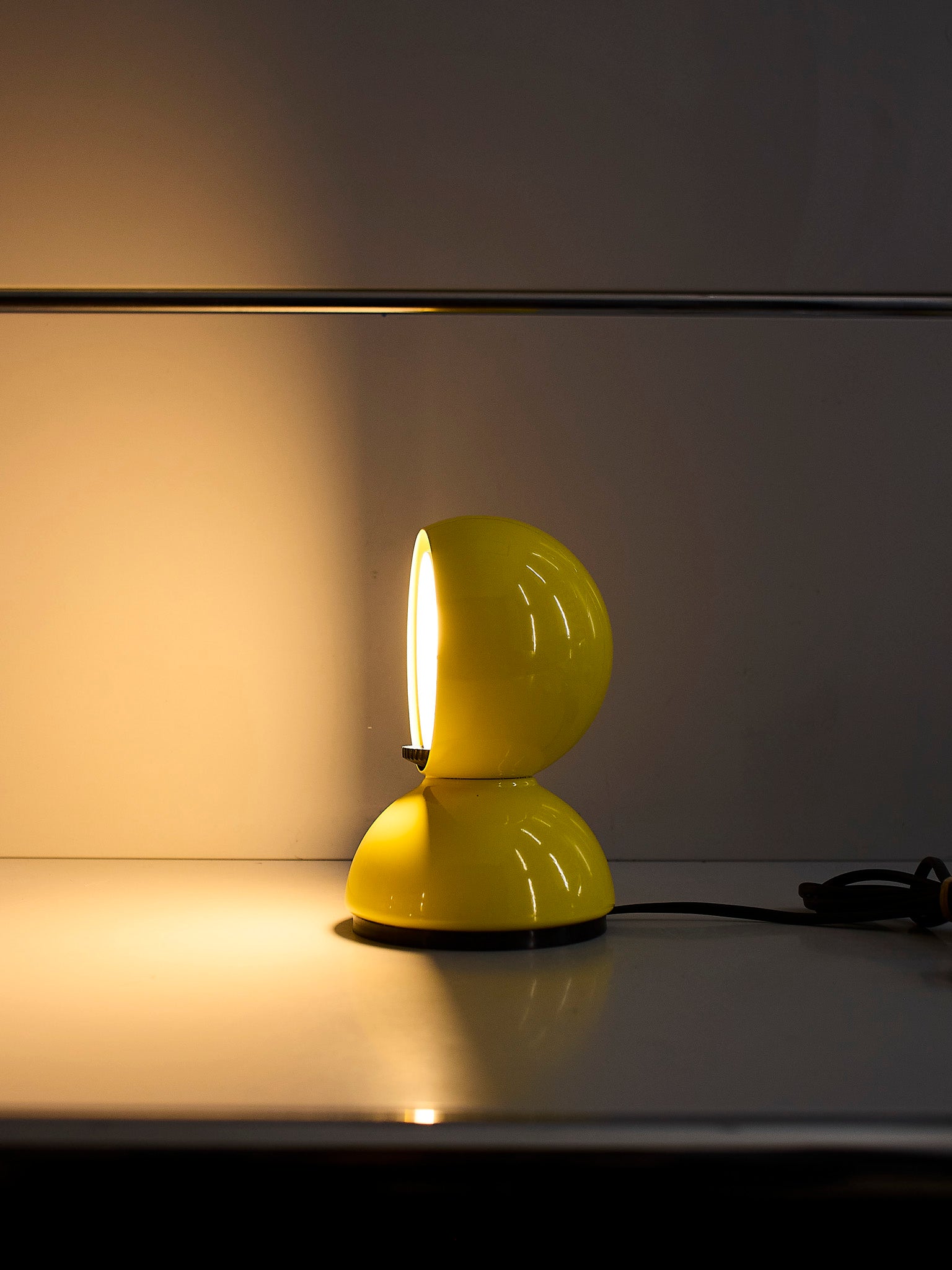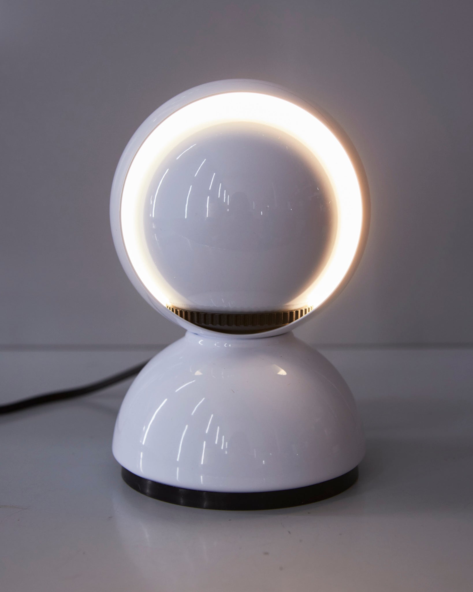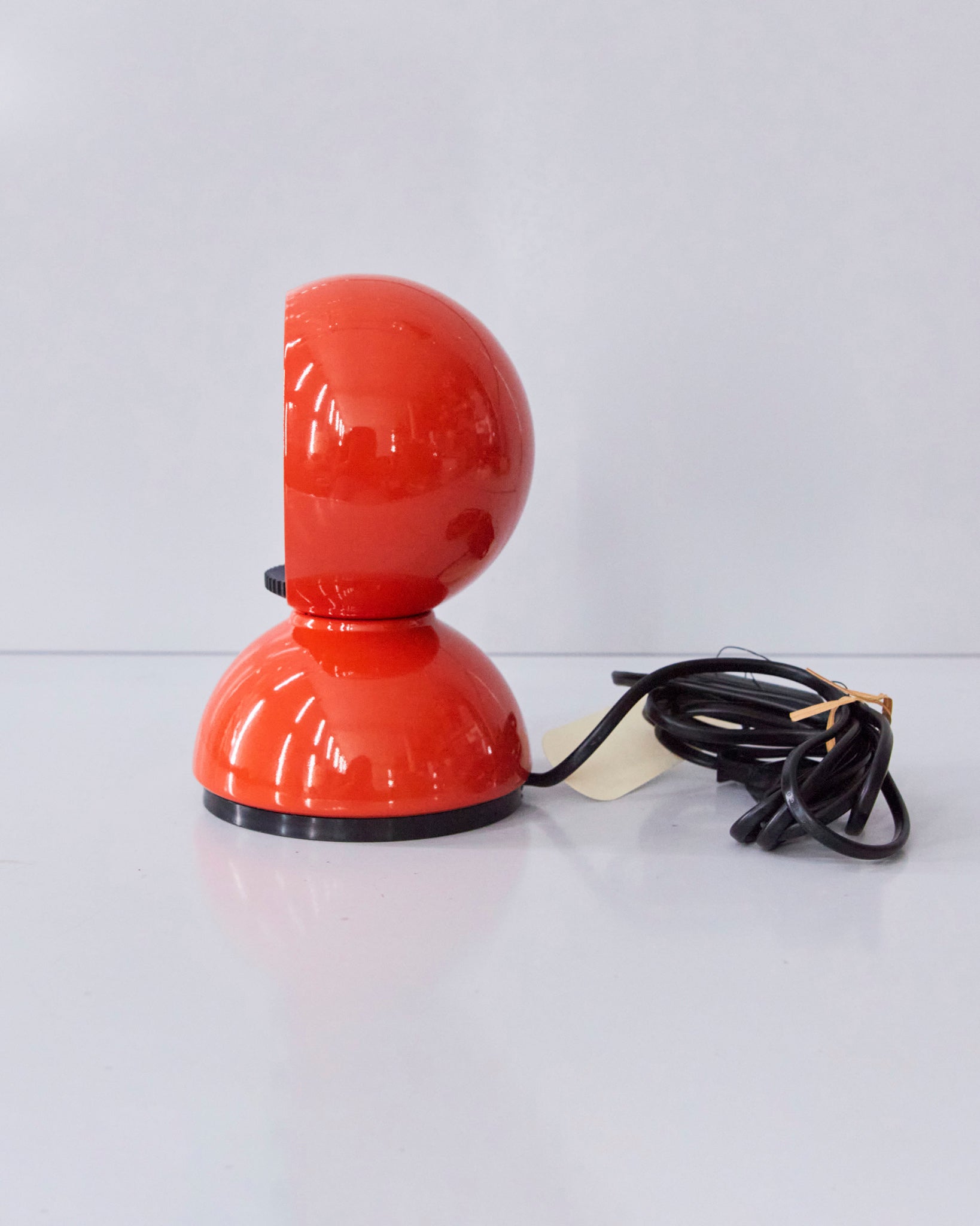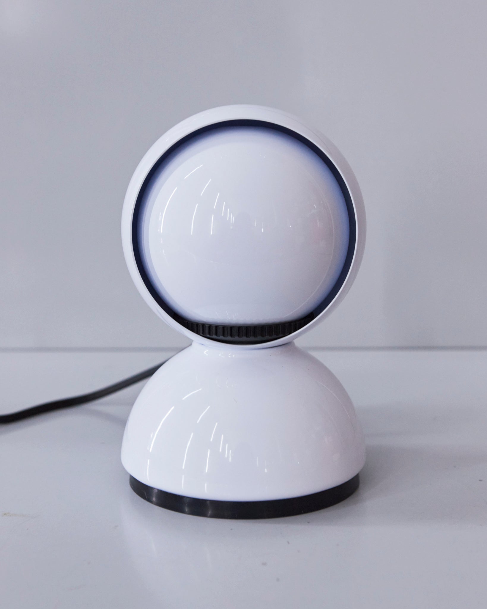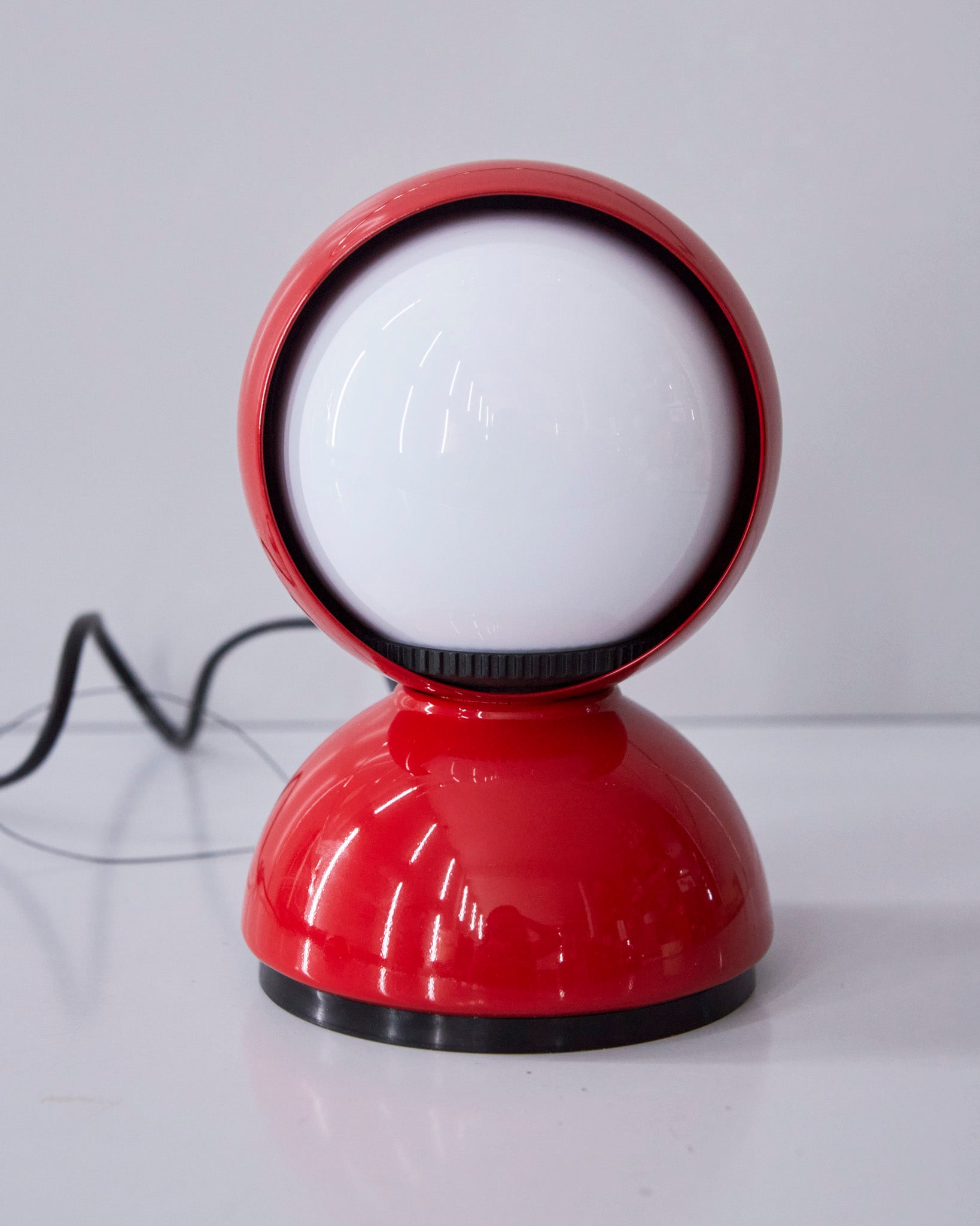 An Italian design icon awarded the Compasso d’Oro in 1967. Its genius lies in a rotating inner shade that allows the user to “eclipse” the light source, adjusting between direct and diffused illumination. Composed of overlapping hemispheres with a fixed outer shell and a movable inner shell, it can be used as a table or wall lamp. It is available in multiple finishes including classic painted metal colours and premium PVD options.