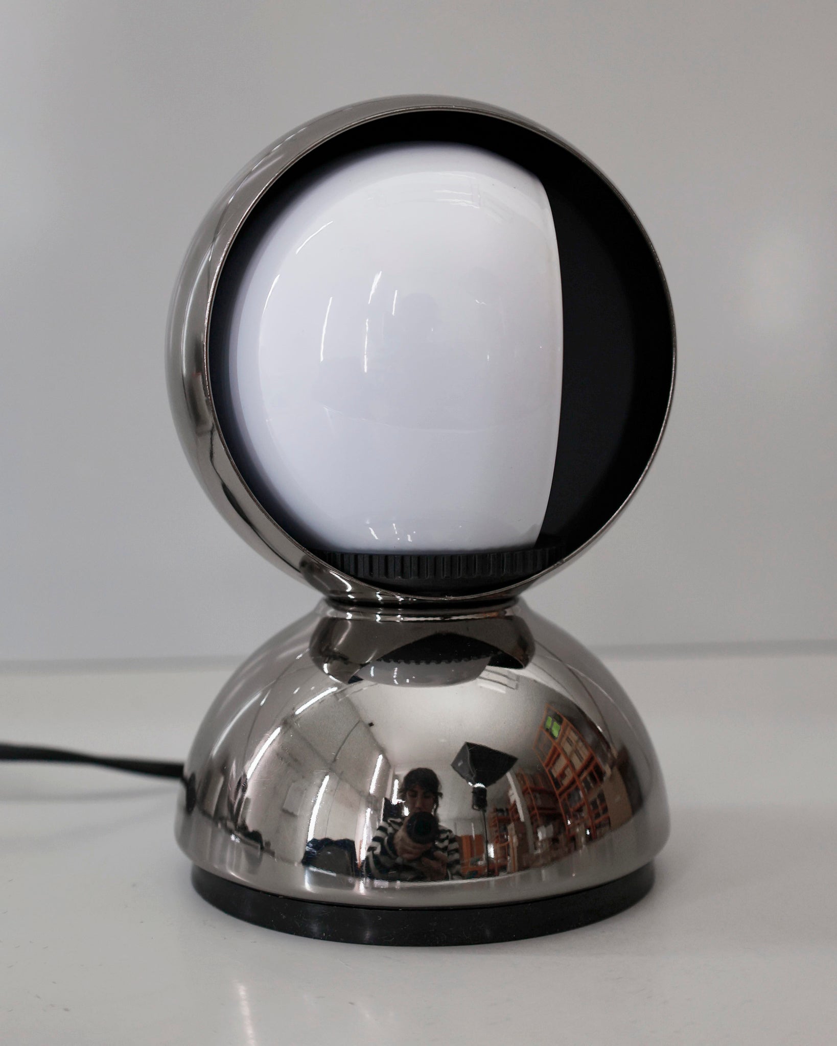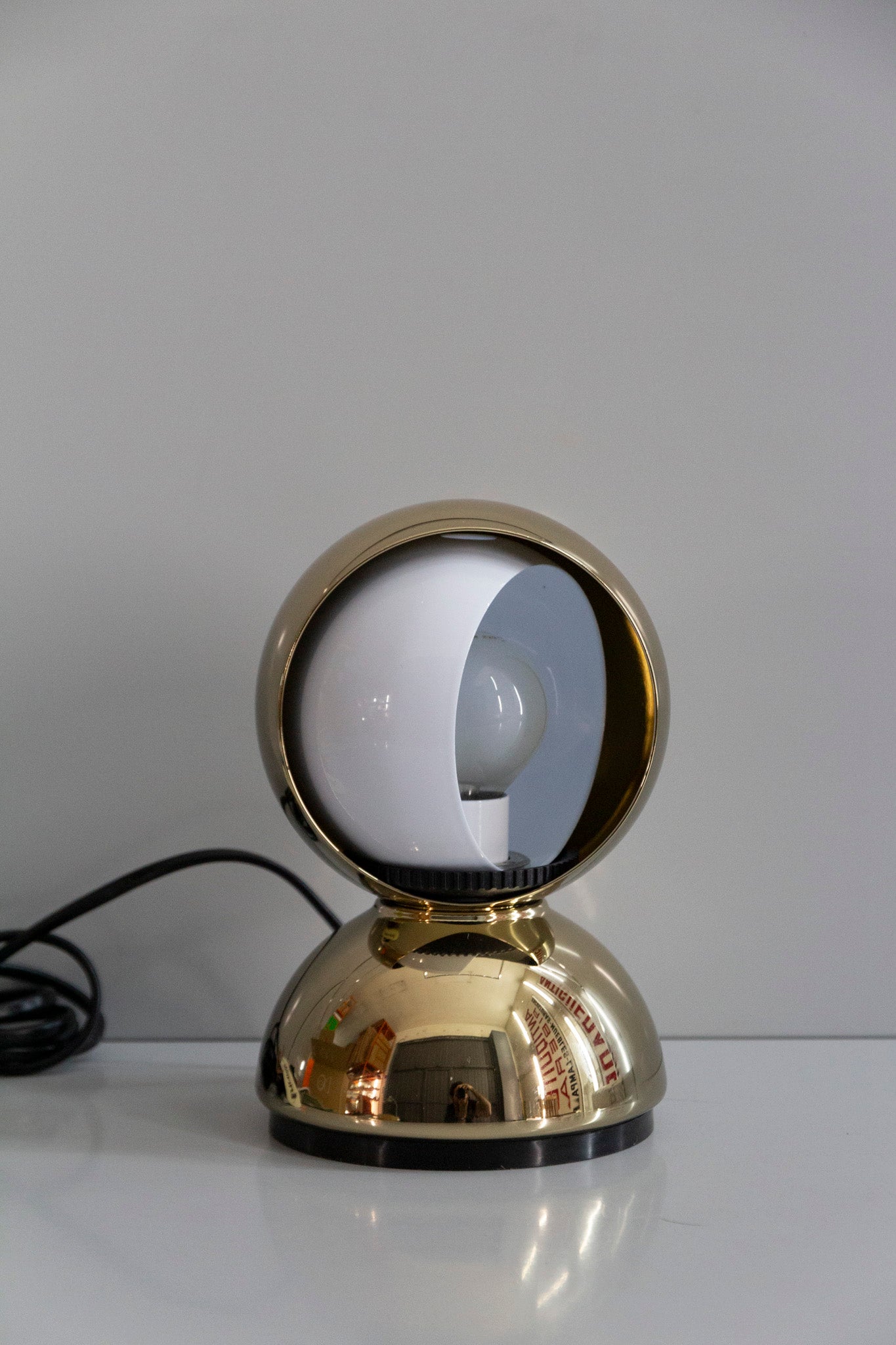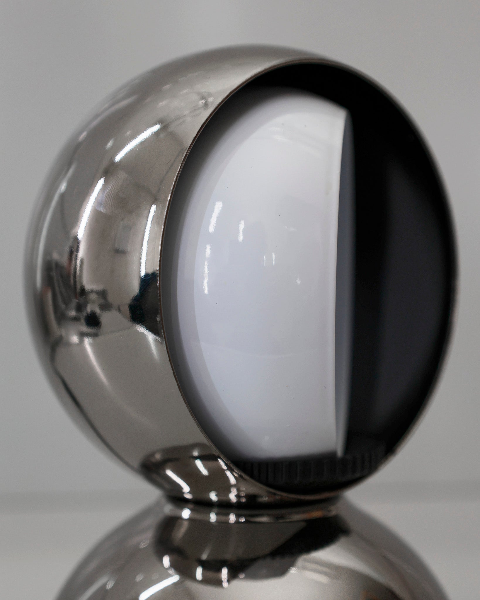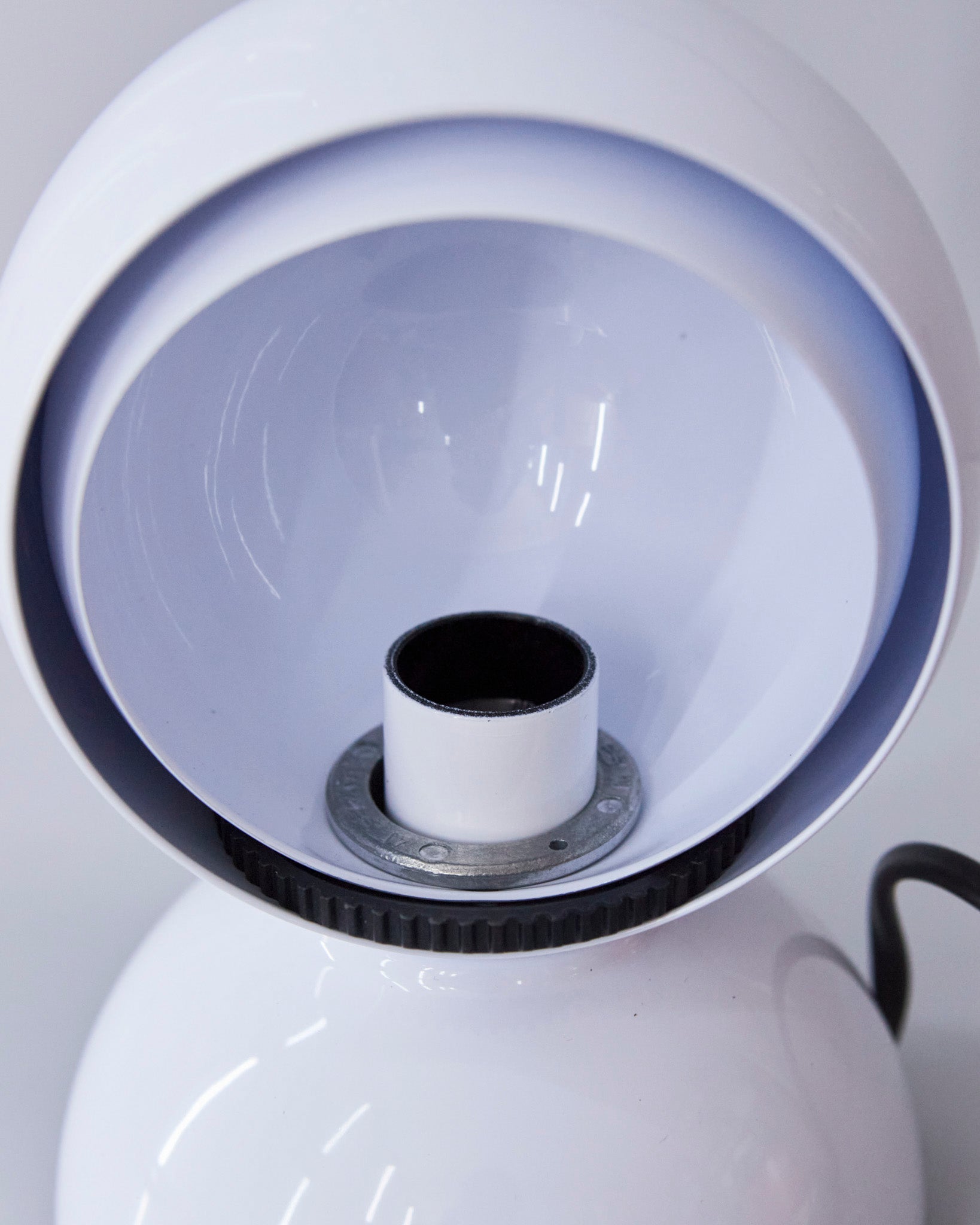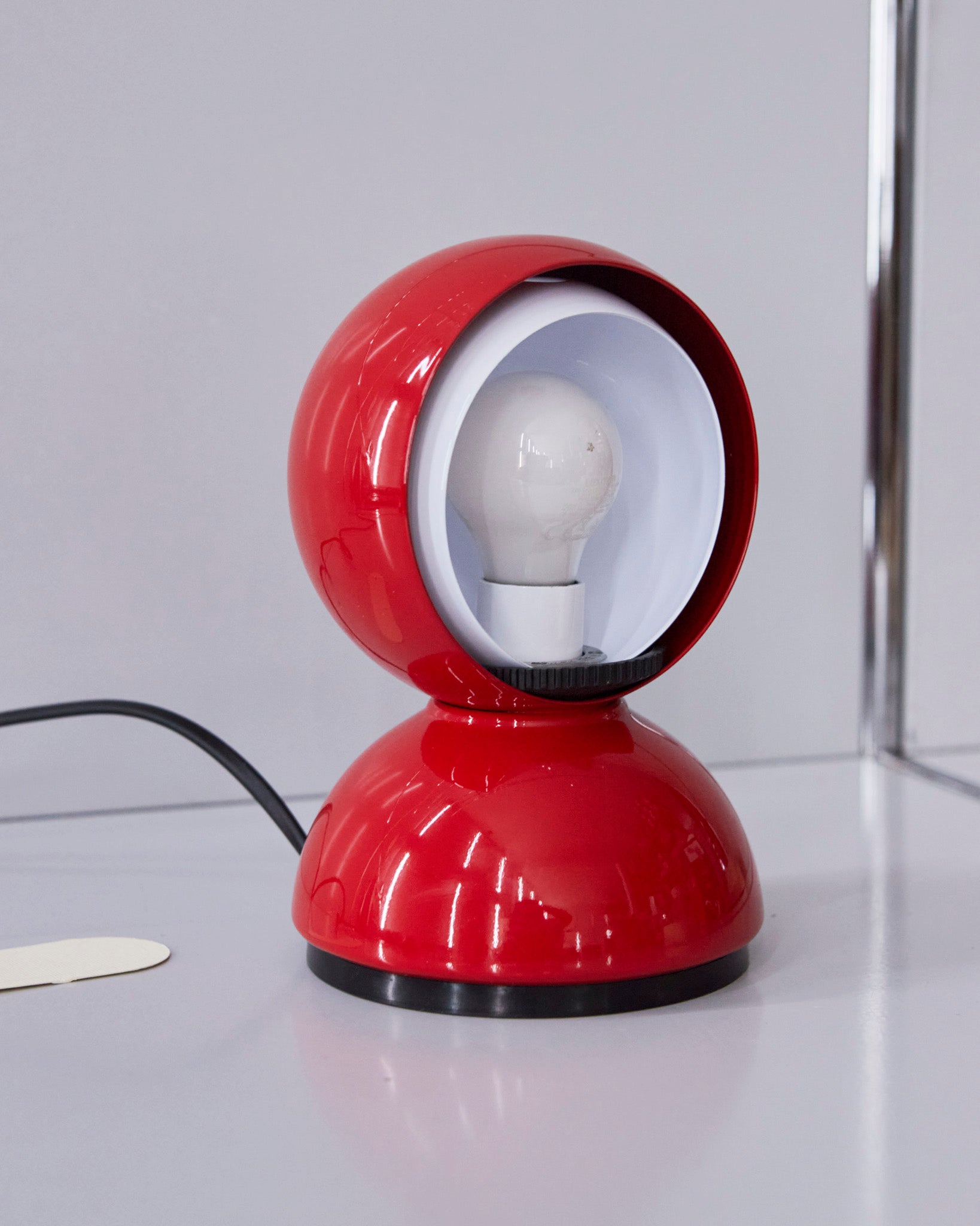 An Italian design icon awarded the Compasso d’Oro in 1967. Its genius lies in a rotating inner shade that allows the user to “eclipse” the light source, adjusting between direct and diffused illumination. Composed of overlapping hemispheres with a fixed outer shell and a movable inner shell, it can be used as a table or wall lamp. It is available in multiple finishes including classic painted metal colours and premium PVD options.