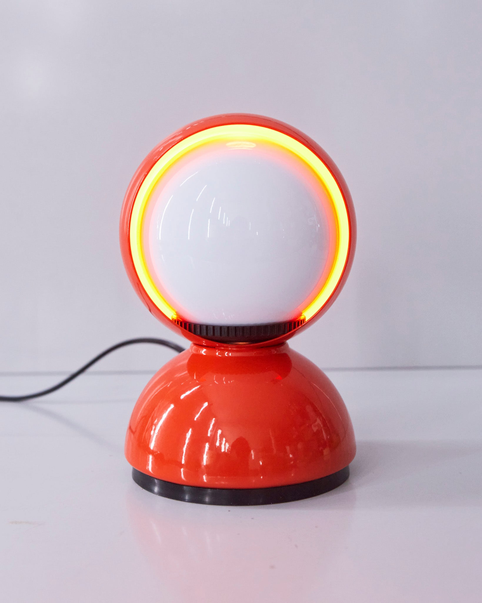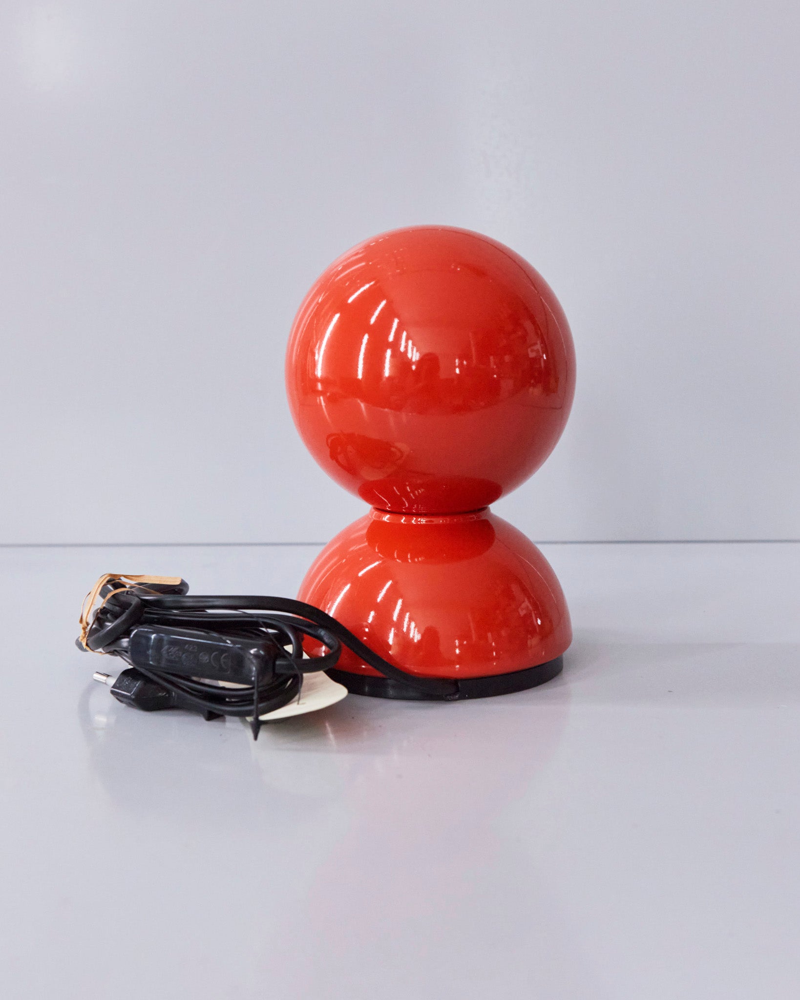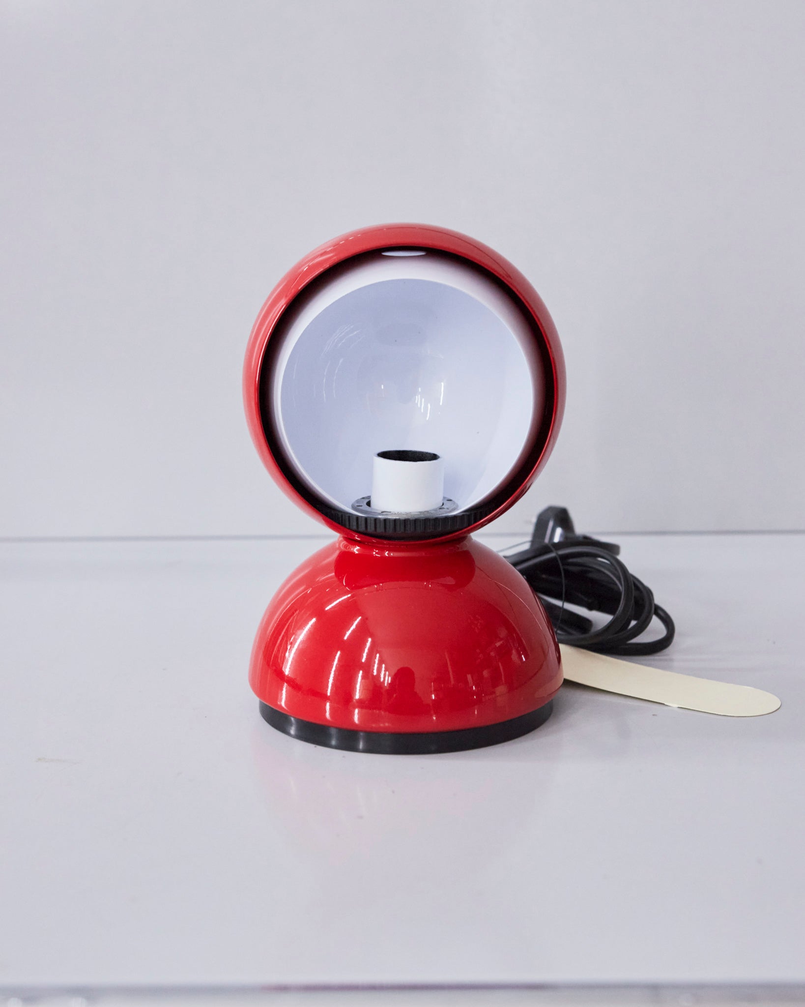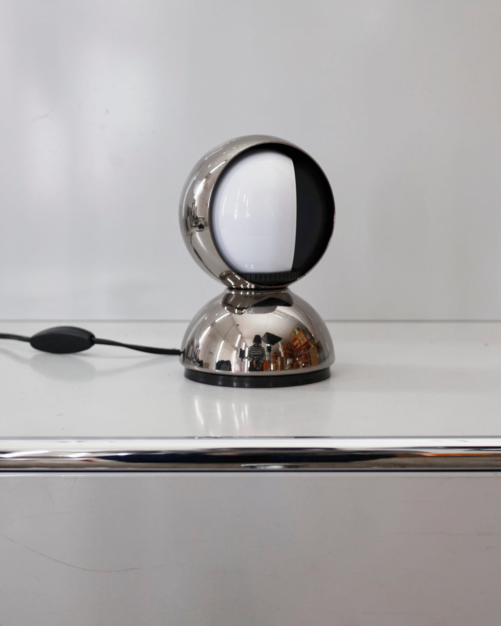An Italian design icon awarded the Compasso d’Oro in 1967. Its genius lies in a rotating inner shade that allows the user to “eclipse” the light source, adjusting between direct and diffused illumination. Composed of overlapping hemispheres with a fixed outer shell and a movable inner shell, it can be used as a table or wall lamp. It is available in multiple finishes including classic painted metal colours and premium PVD options.