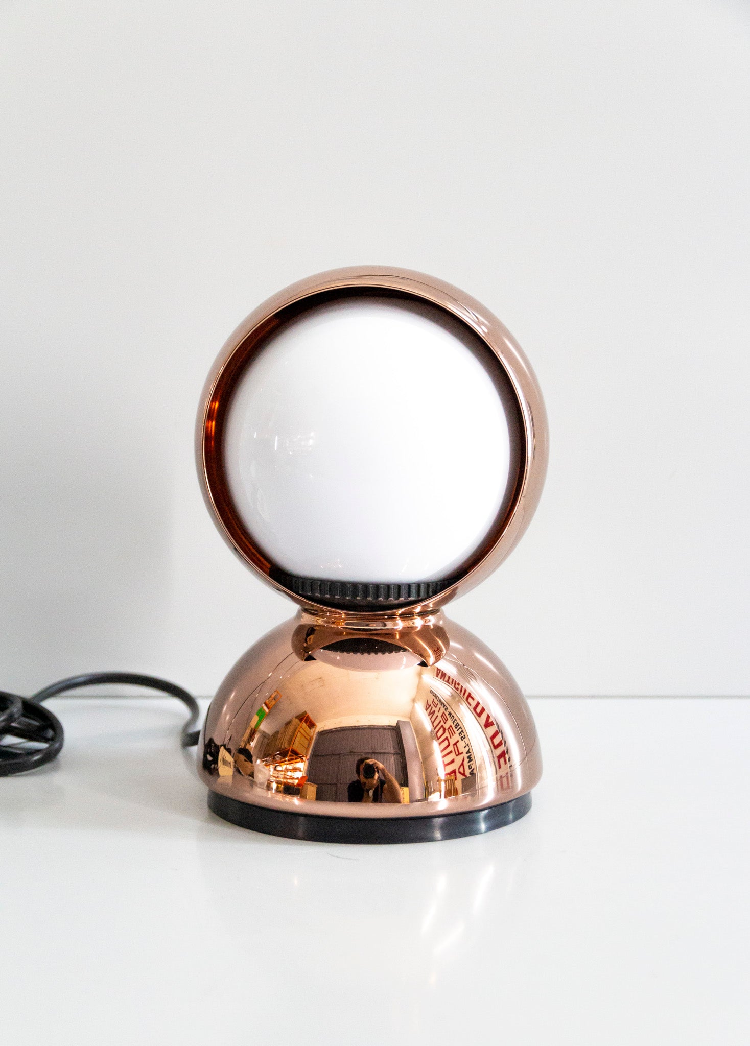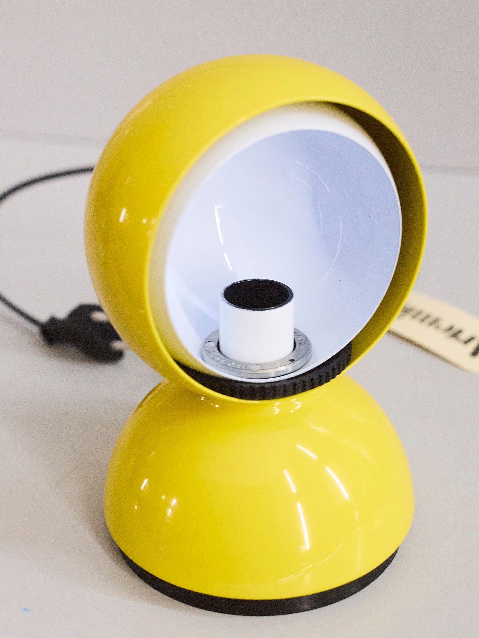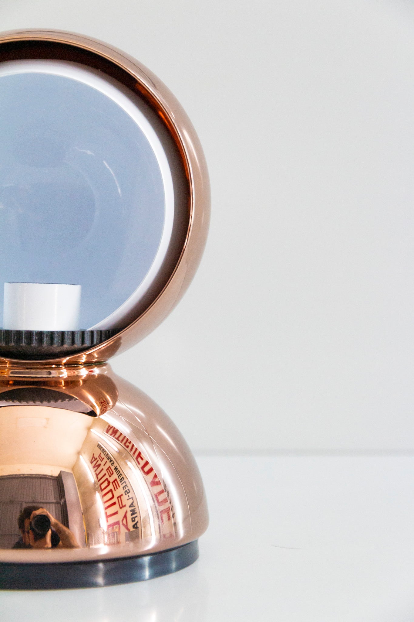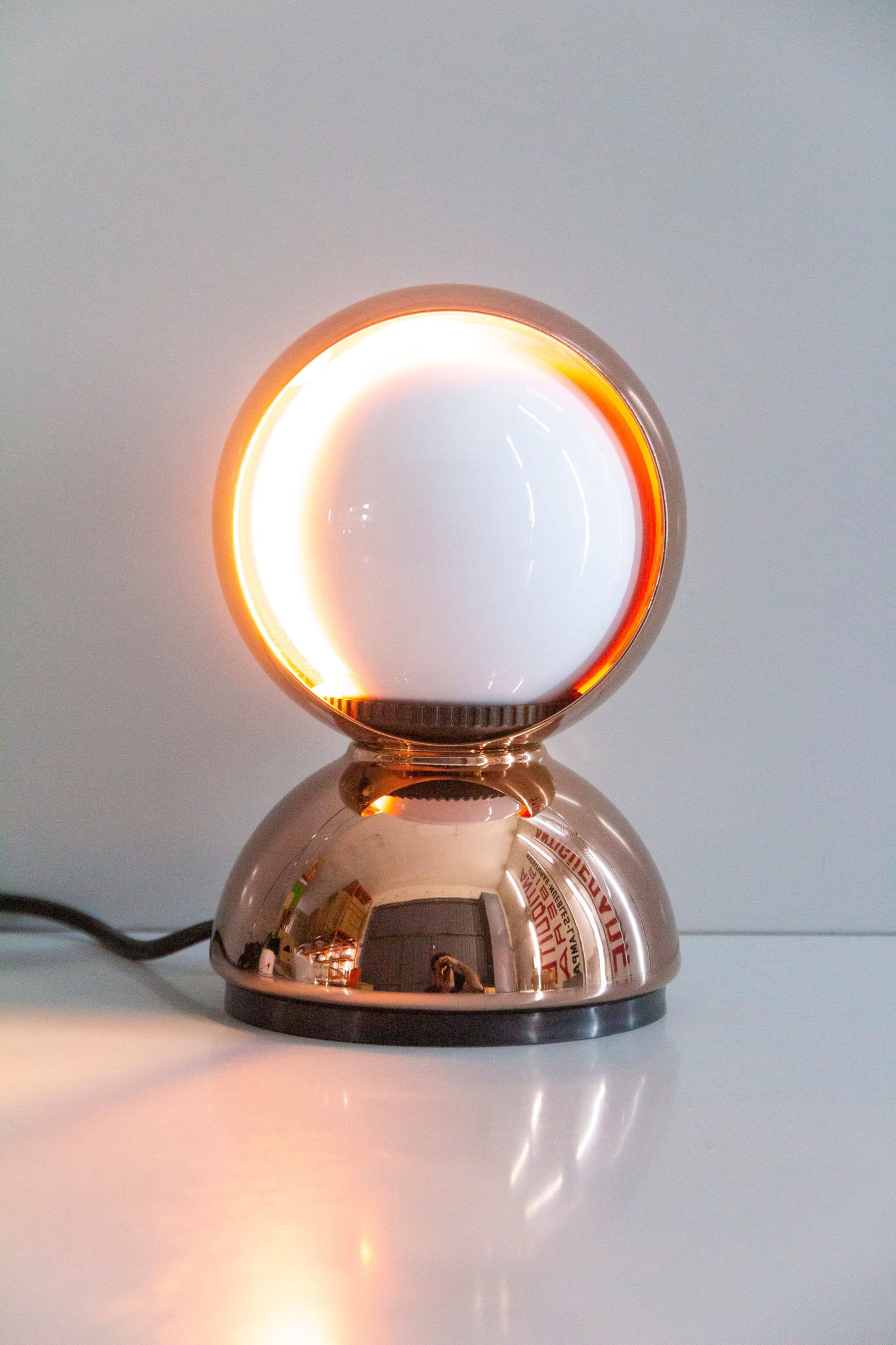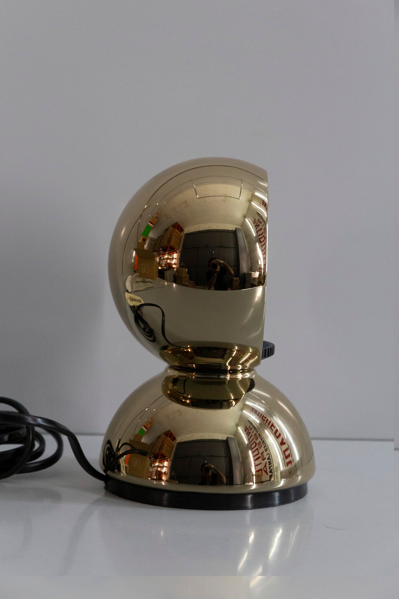 An Italian design icon awarded the Compasso d’Oro in 1967. Its genius lies in a rotating inner shade that allows the user to “eclipse” the light source, adjusting between direct and diffused illumination. Composed of overlapping hemispheres with a fixed outer shell and a movable inner shell, it can be used as a table or wall lamp. It is available in multiple finishes including classic painted metal colours and premium PVD options.