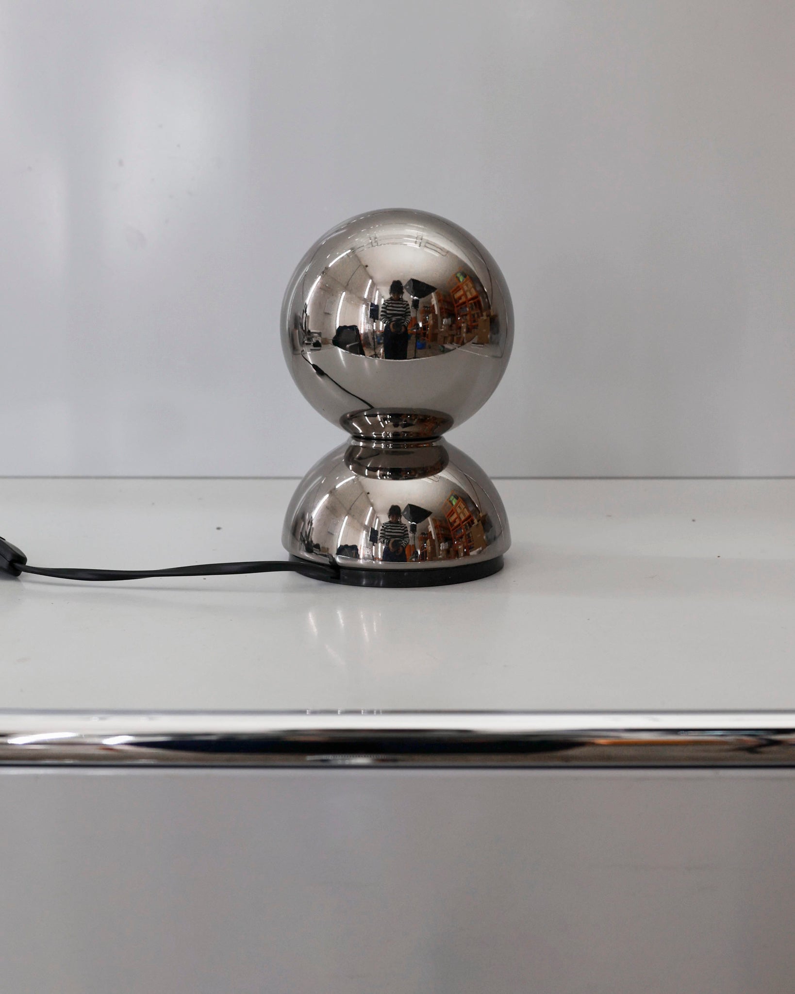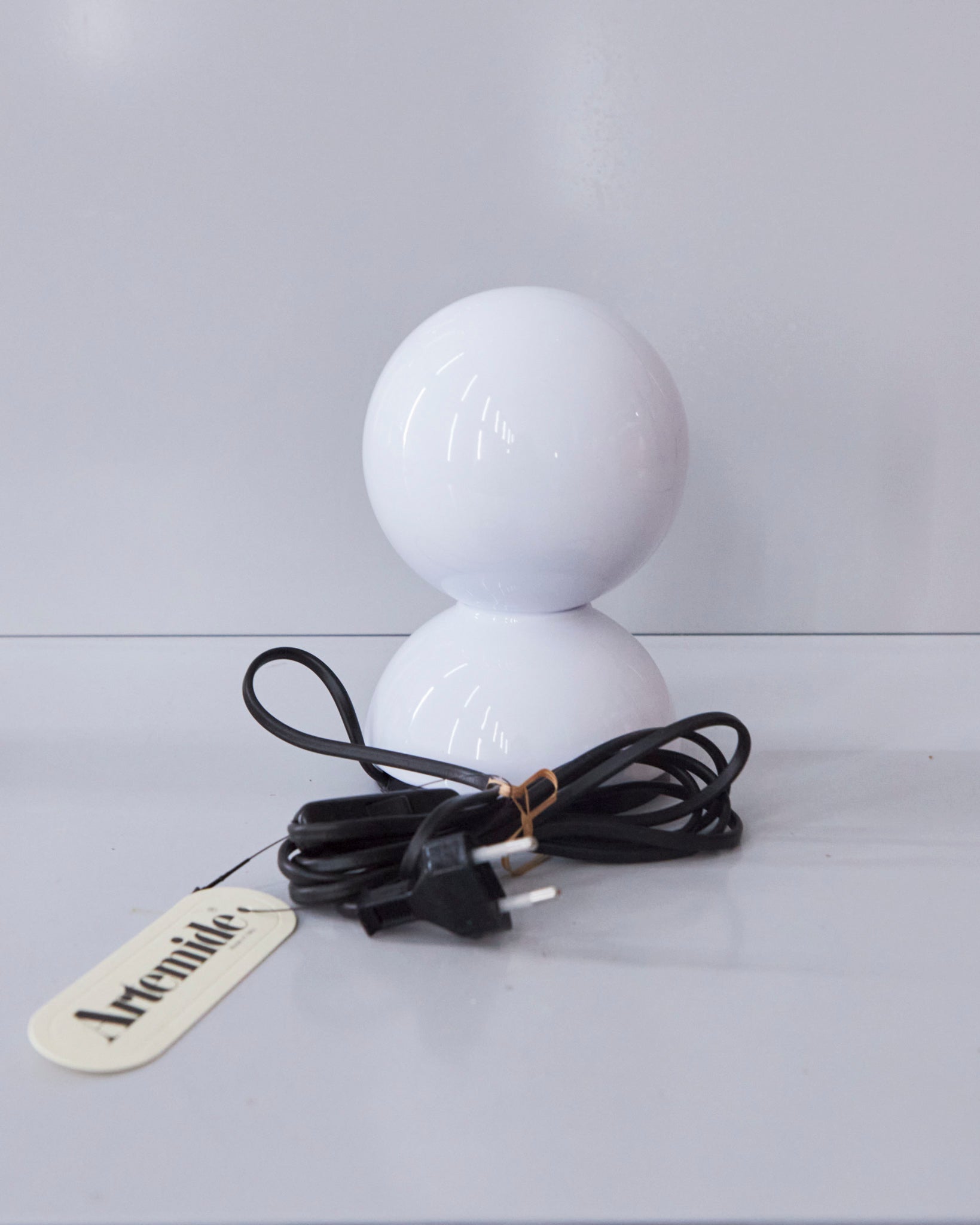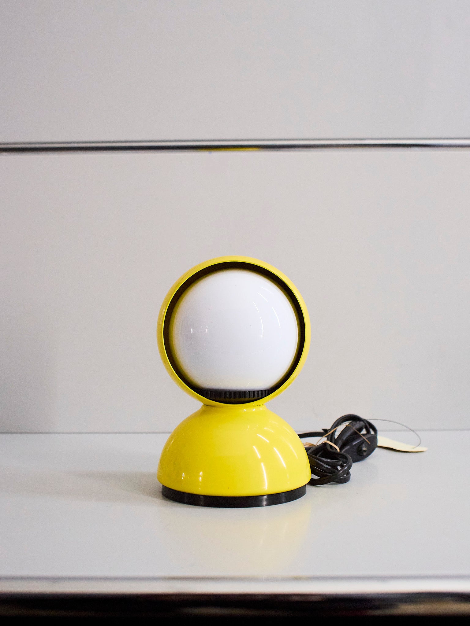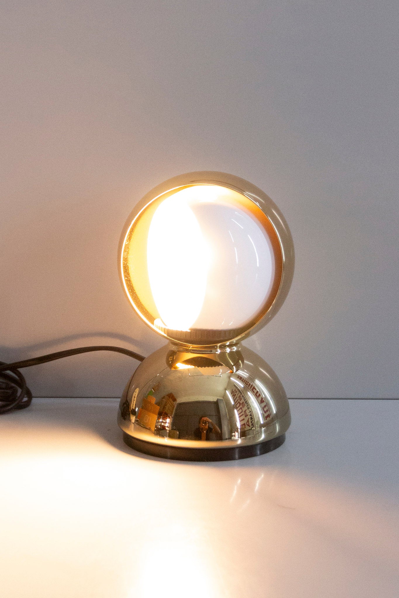 An Italian design icon awarded the Compasso d’Oro in 1967. Its genius lies in a rotating inner shade that allows the user to “eclipse” the light source, adjusting between direct and diffused illumination. Composed of overlapping hemispheres with a fixed outer shell and a movable inner shell, it can be used as a table or wall lamp. It is available in multiple finishes including classic painted metal colours and premium PVD options.