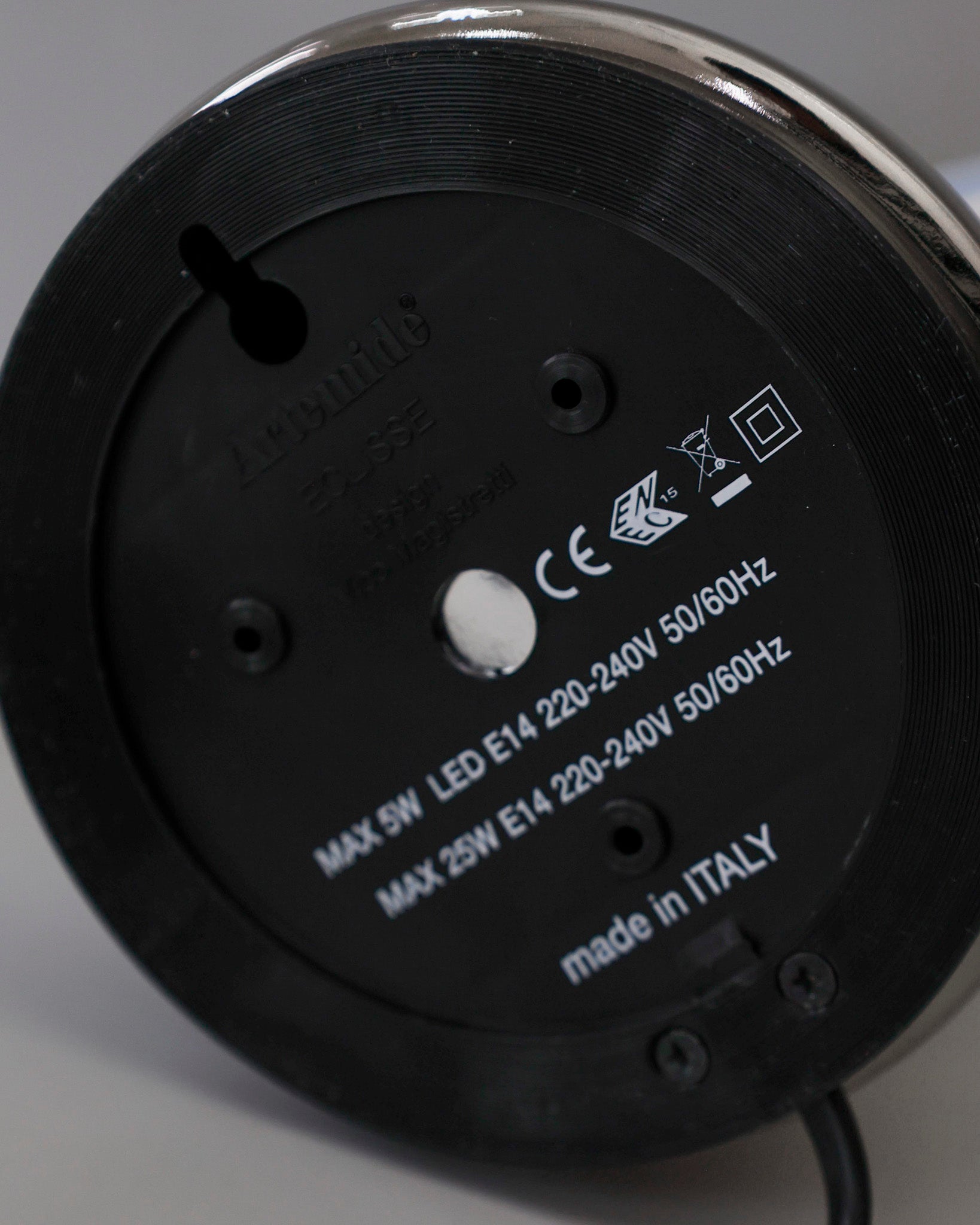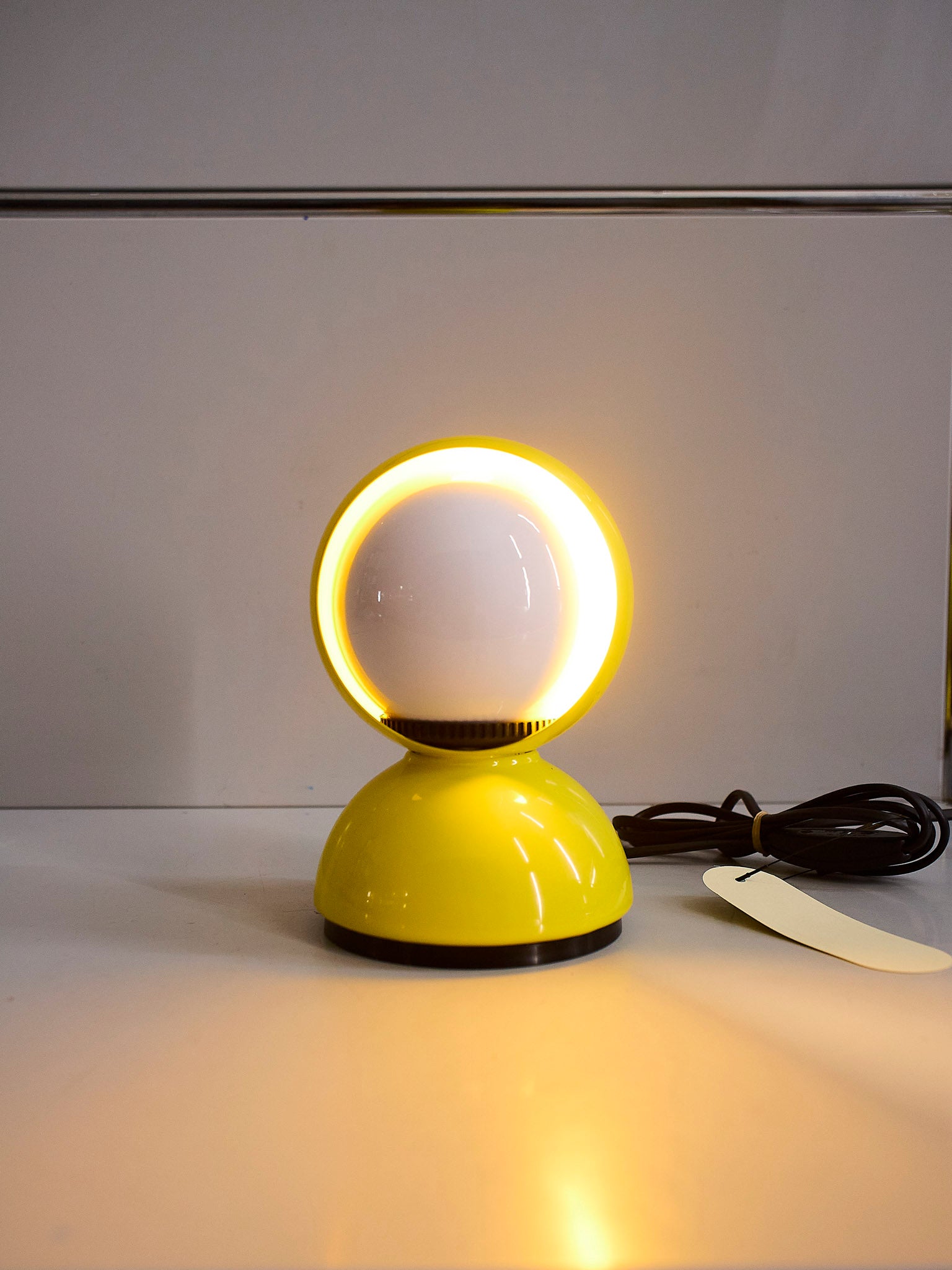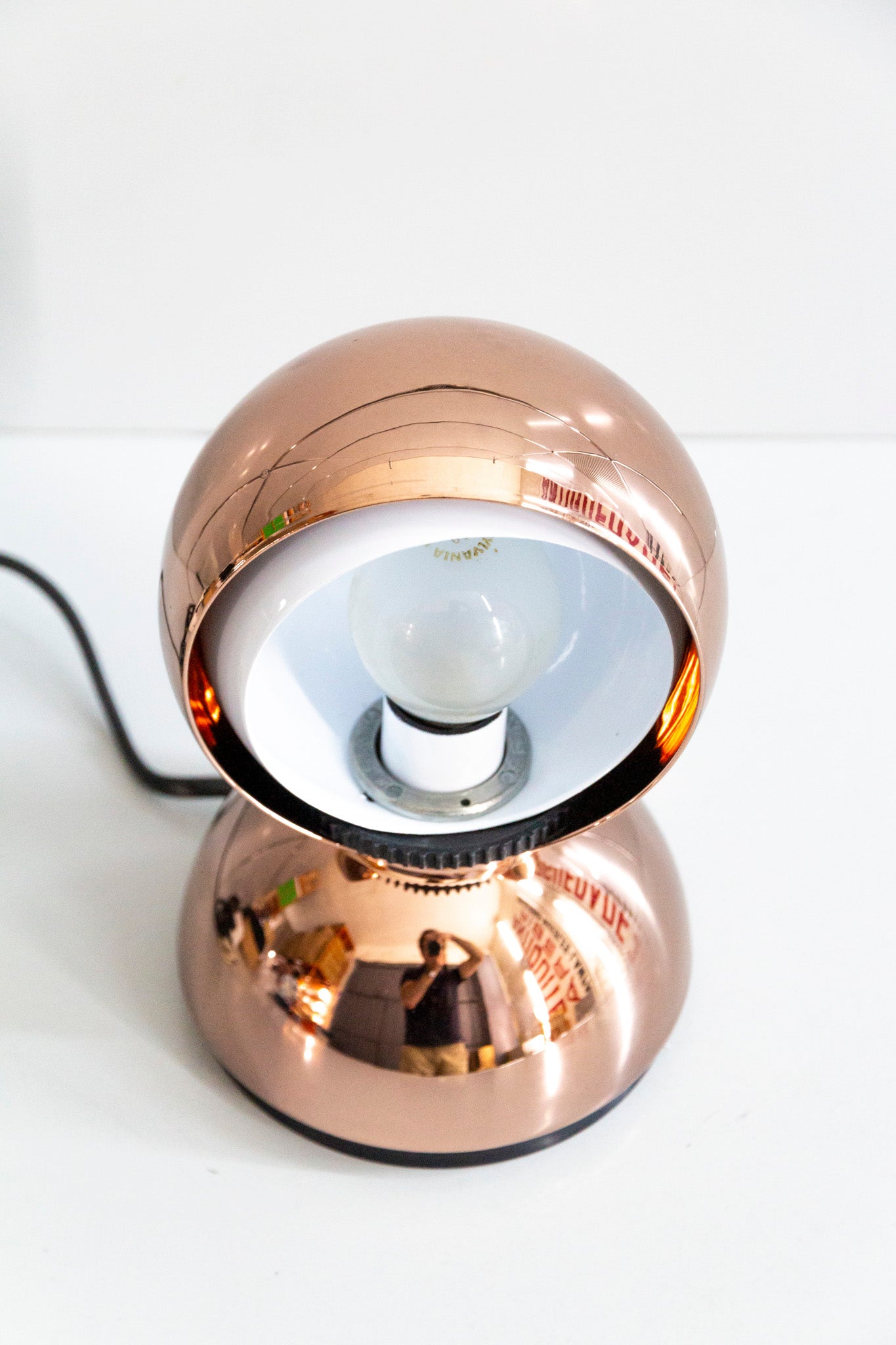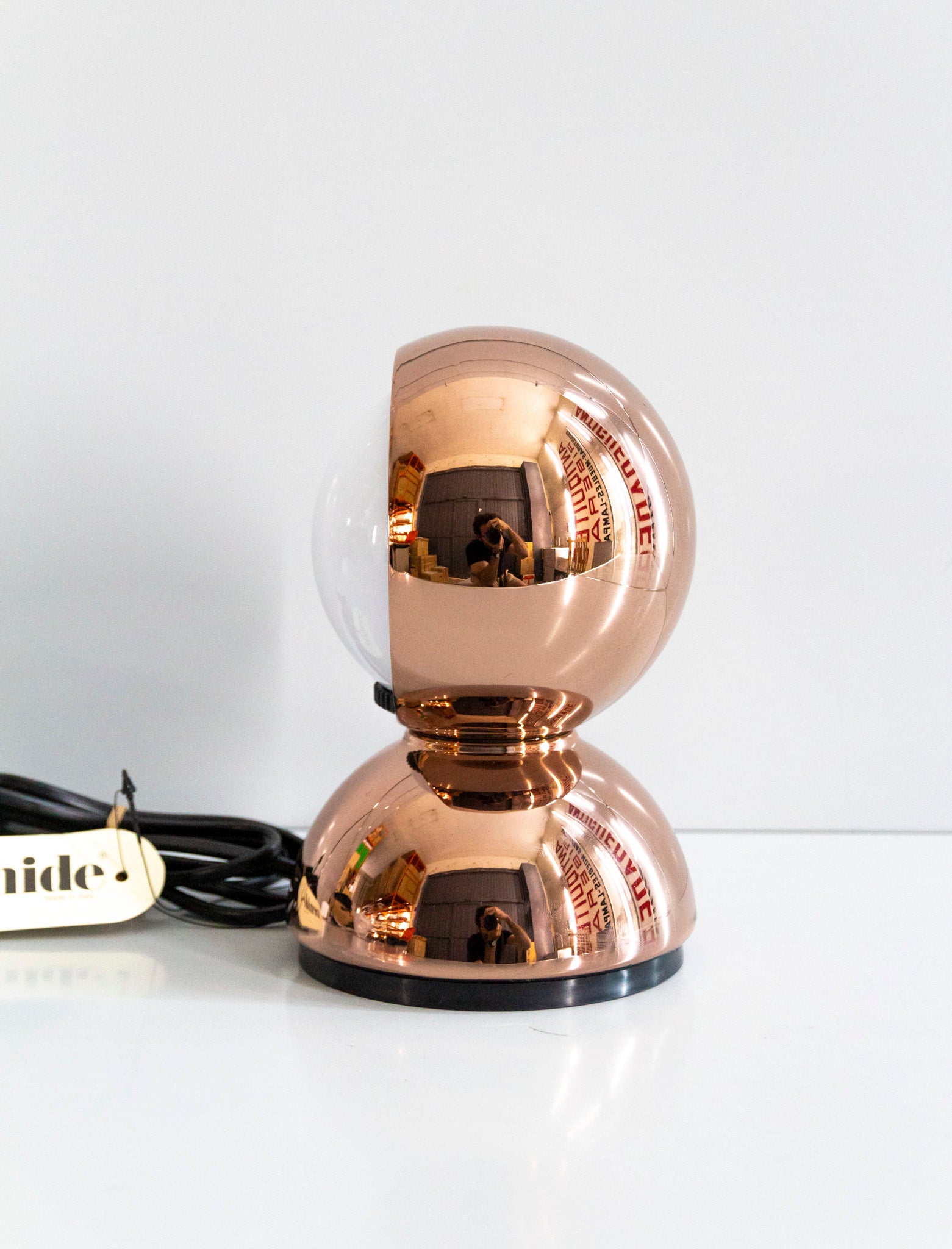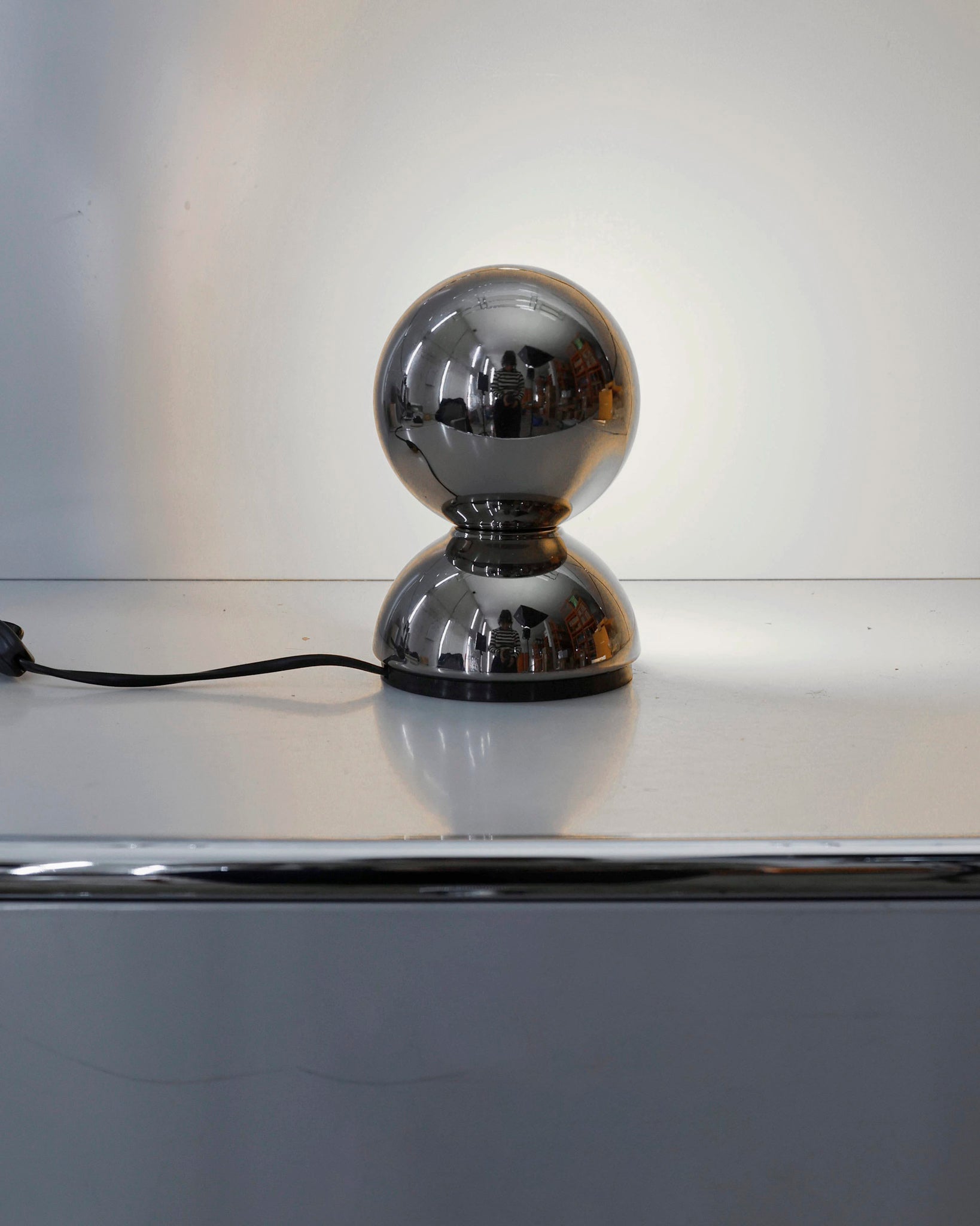 An Italian design icon awarded the Compasso d’Oro in 1967. Its genius lies in a rotating inner shade that allows the user to “eclipse” the light source, adjusting between direct and diffused illumination. Composed of overlapping hemispheres with a fixed outer shell and a movable inner shell, it can be used as a table or wall lamp. It is available in multiple finishes including classic painted metal colours and premium PVD options.