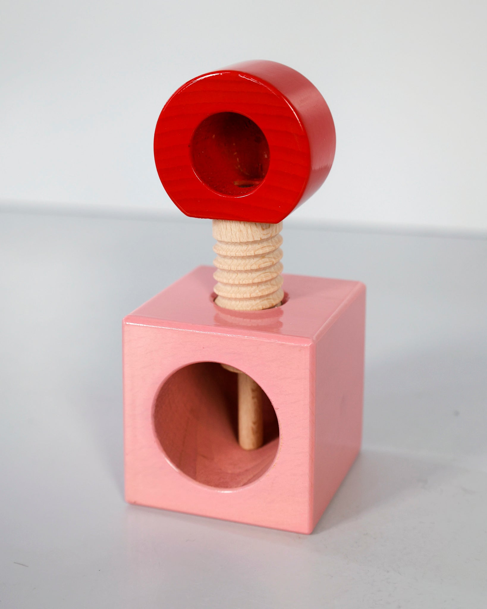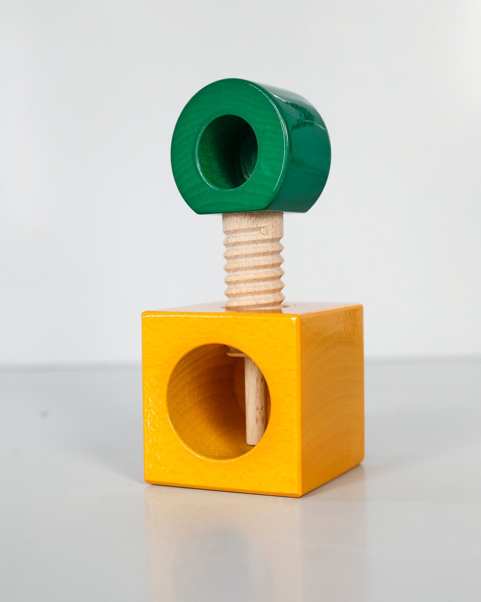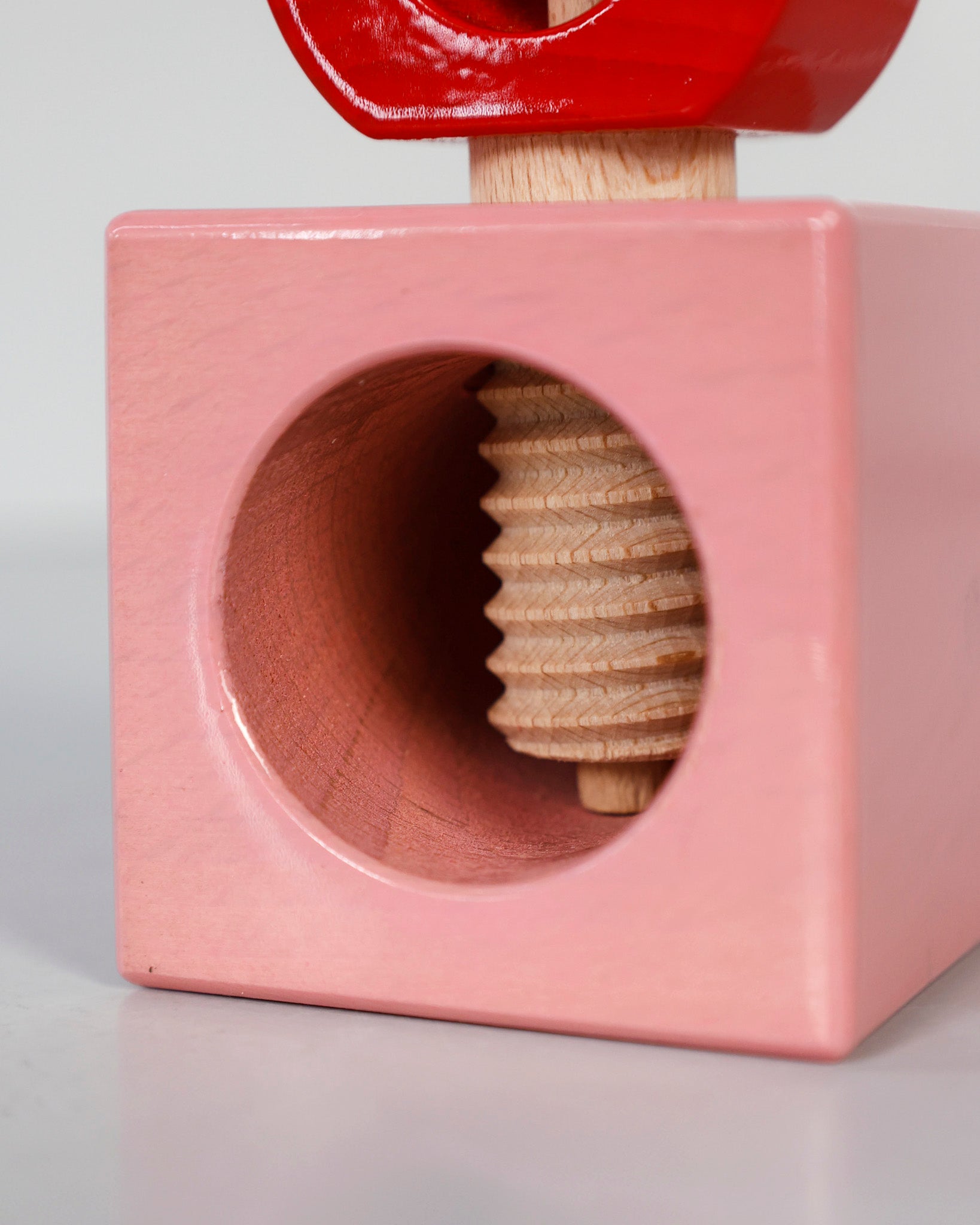 The ES20 Nutcracker reinterprets a traditional tool with playful geometry and vibrant color. Handcrafted in wood and finished with lacquered details, it reflects Sottsass’ ability to turn simple objects into design icons. Functional and expressive, it is part of the joyful Twergi collection that celebrates everyday rituals with creativity.