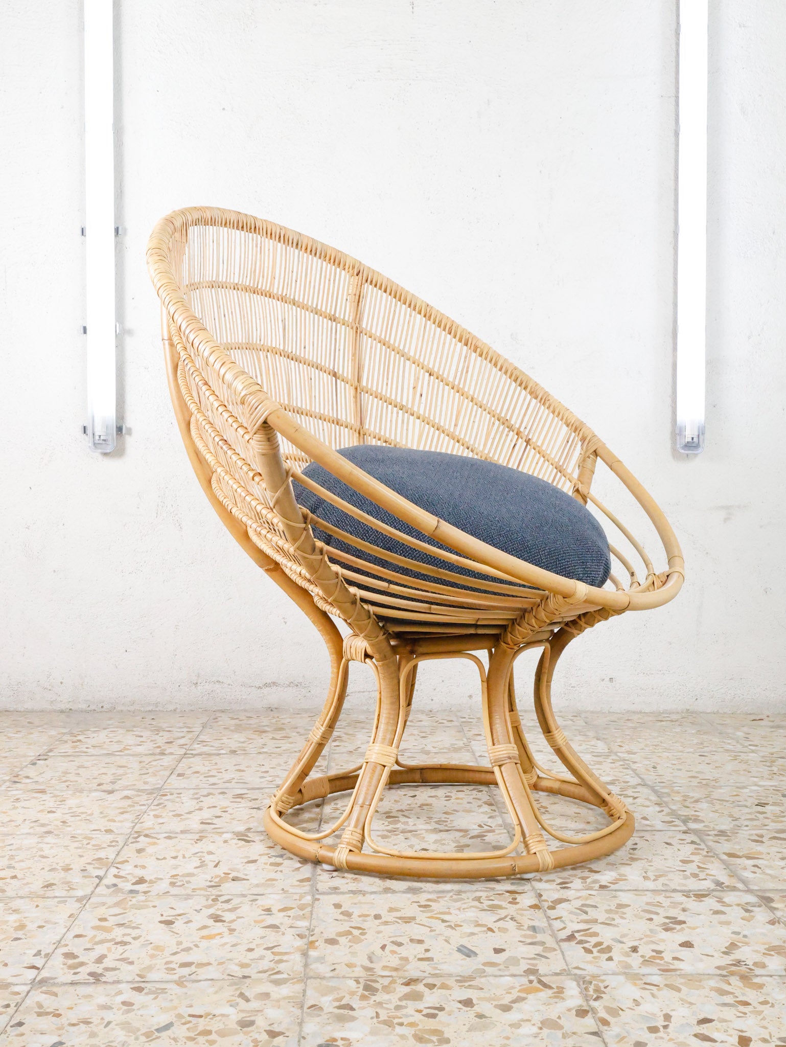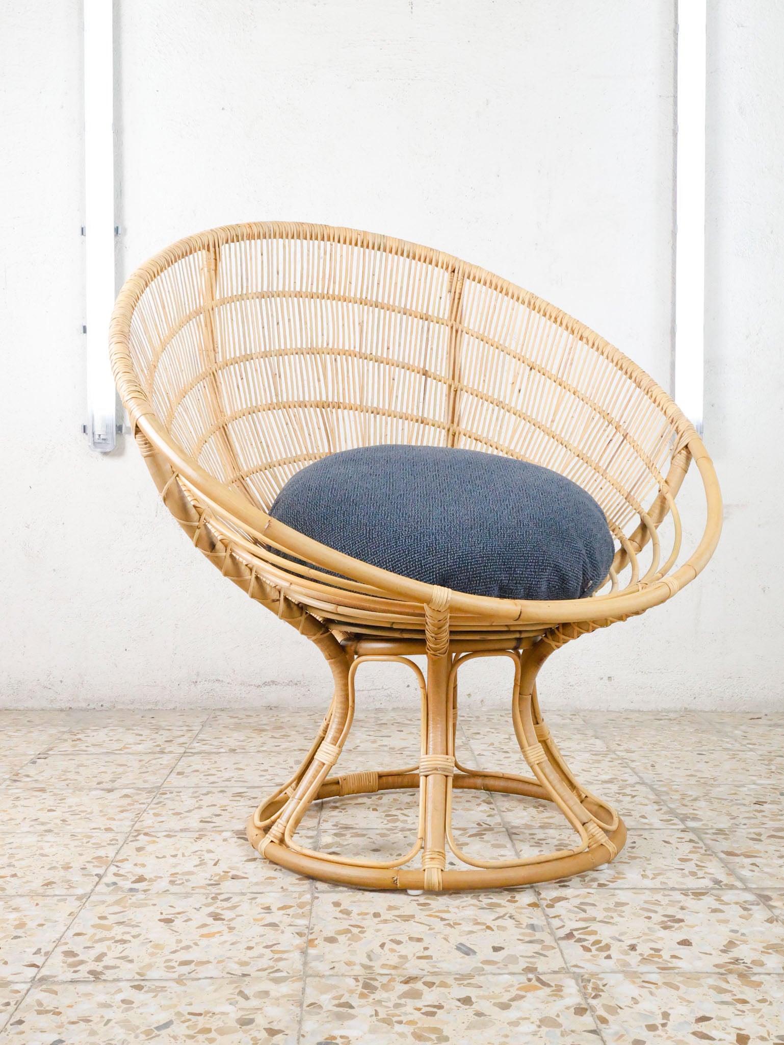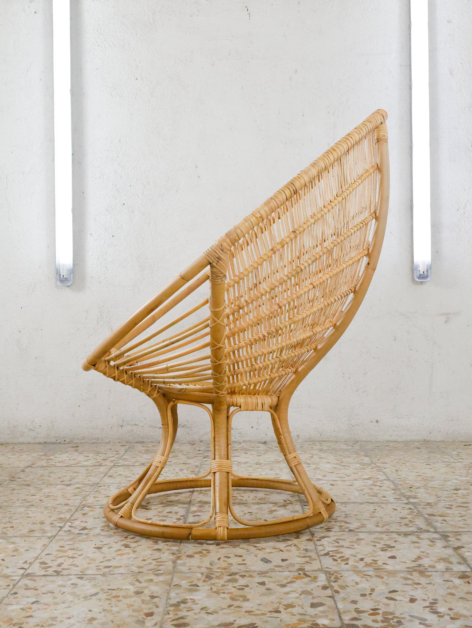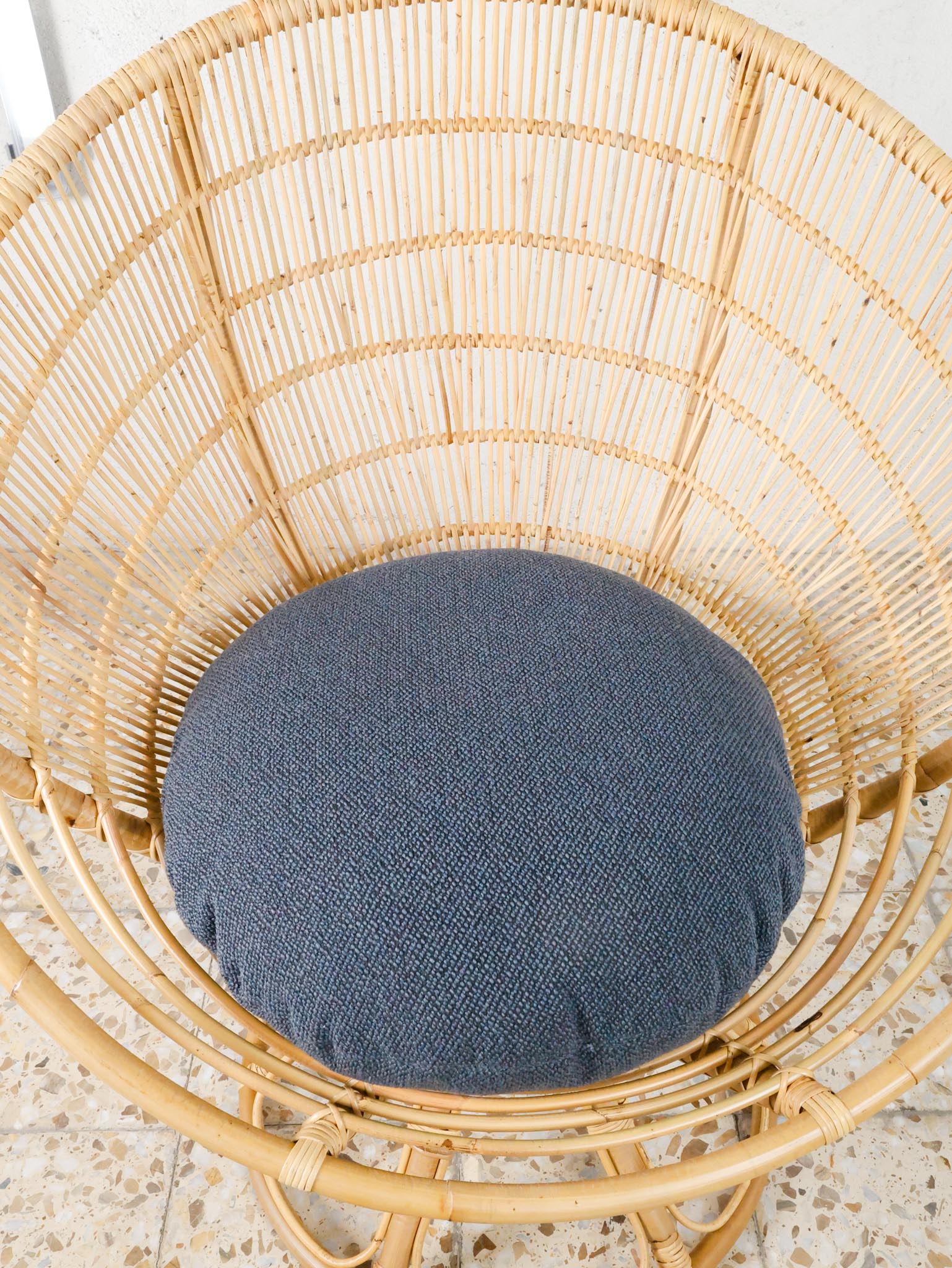The Luna Chair by Franco Albini and Franca Helg is a striking lounge piece that blends sculptural form with lightness and comfort. Originally named Radar, the design draws clear inspiration from the Space Race: a defining cultural movement of the 1960s that left its mark on design and architecture. Its circular, open structure evokes futuristic aesthetics while remaining rooted in craftsmanship, handwoven in natural rattan by skilled artisans. A timeless icon that balances innovation and tradition.