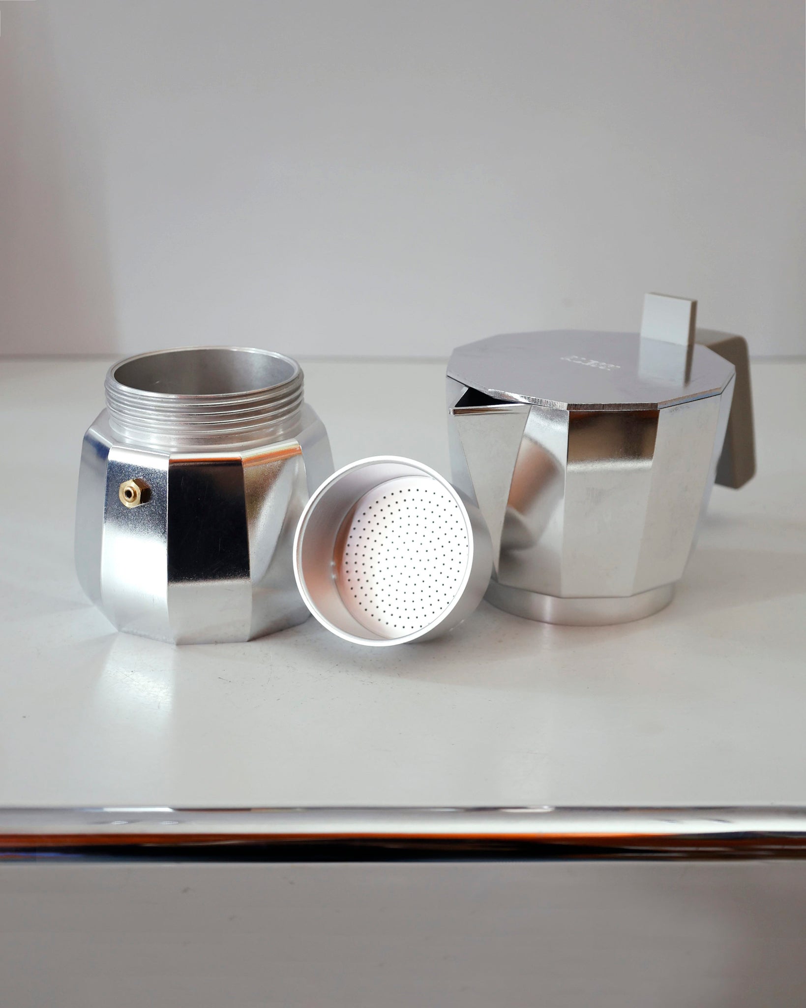The Moka Espresso Coffee Maker reinterprets the classic moka pot with clean lines and balanced proportions. A refined update of an everyday icon, it preserves the traditional ritual of stovetop coffee while offering a contemporary aesthetic.