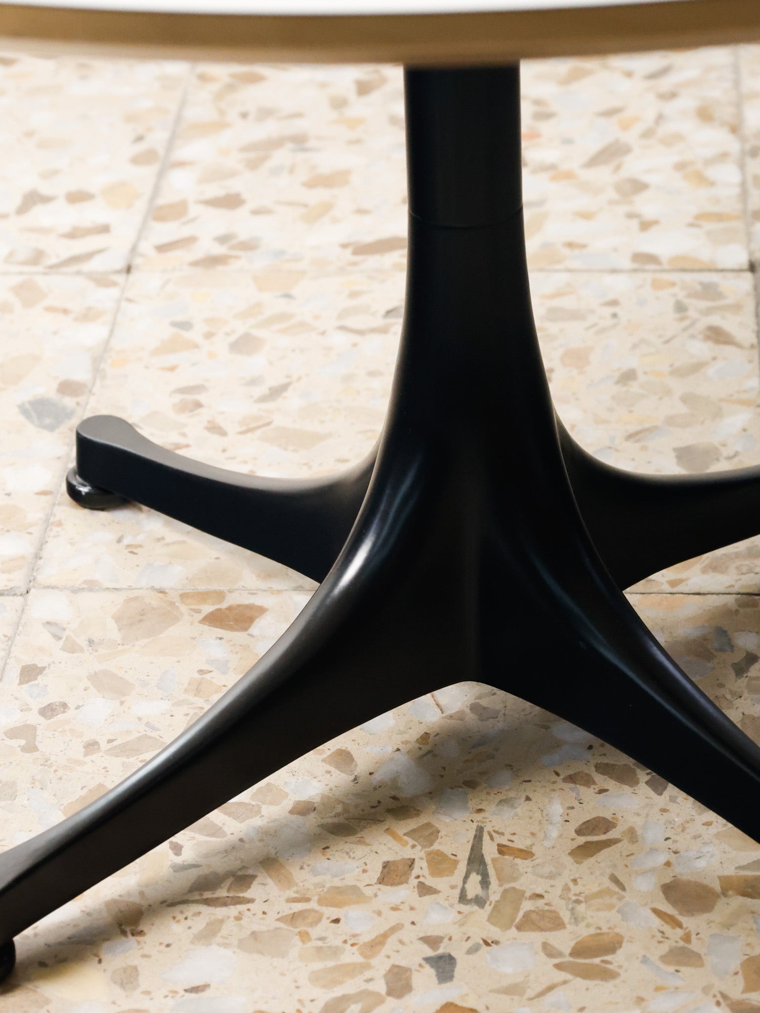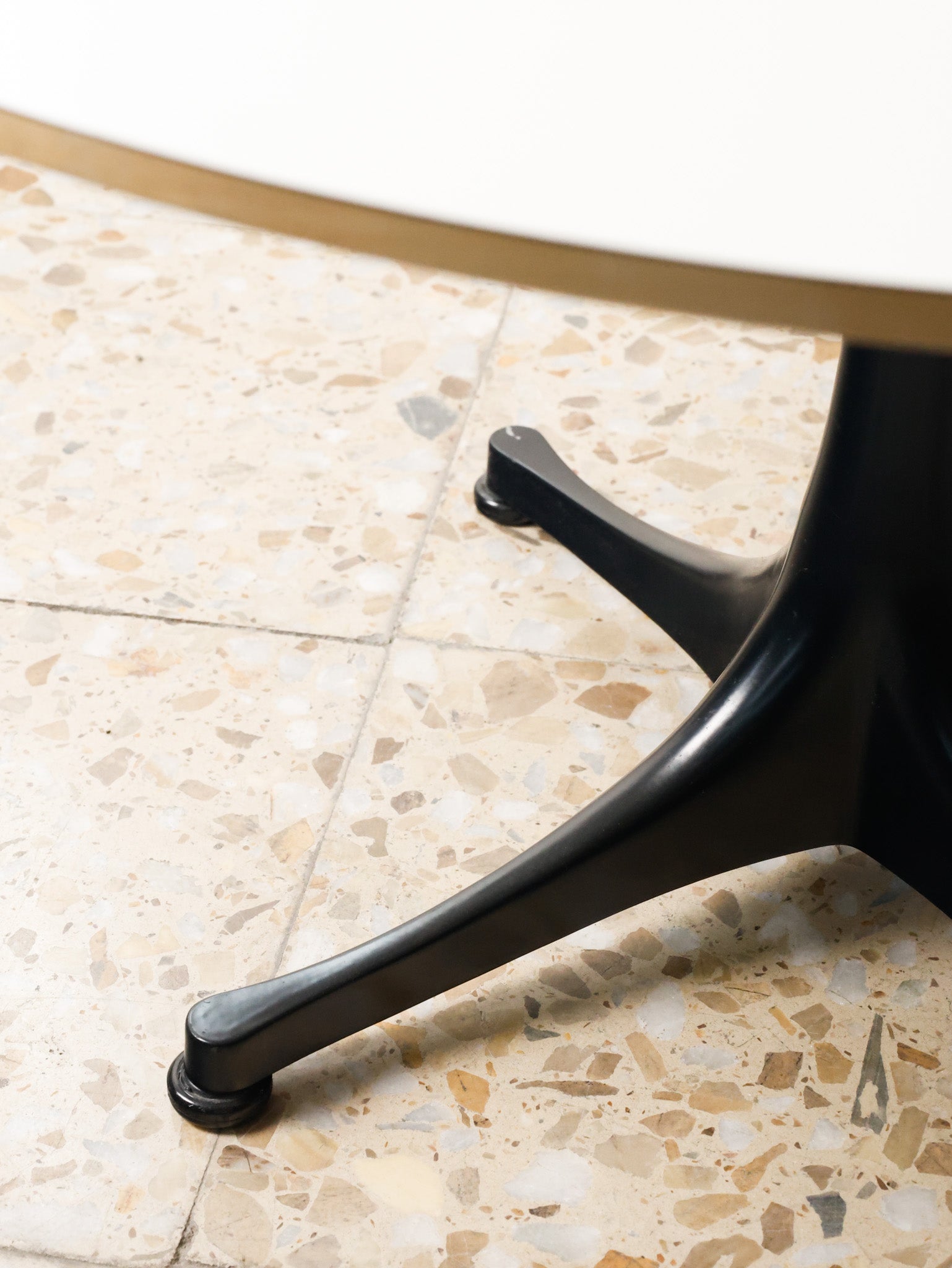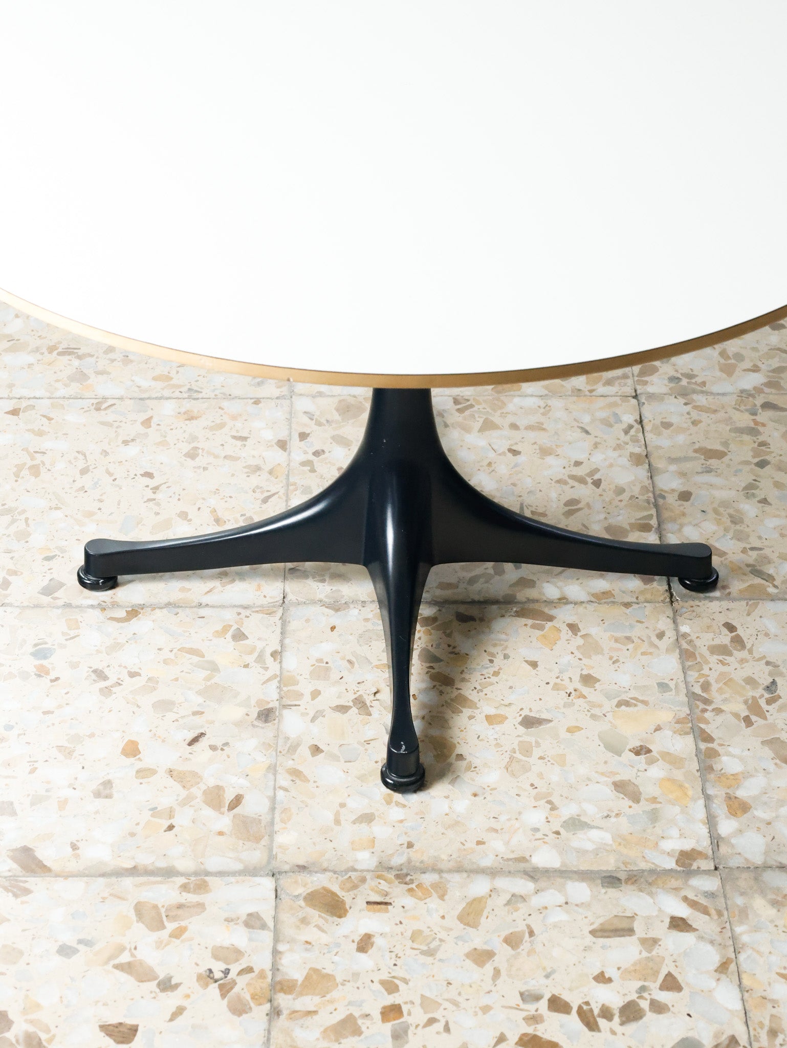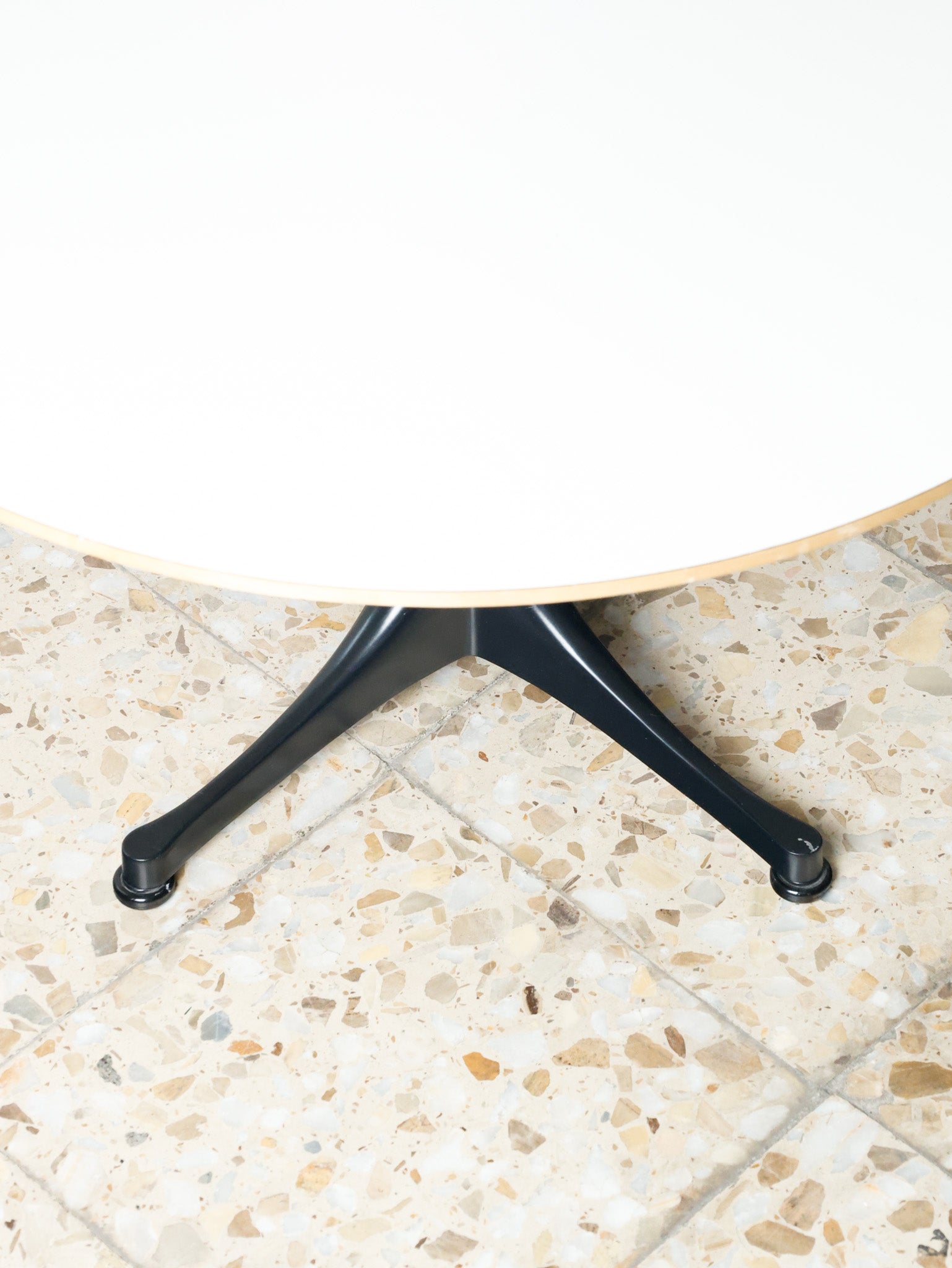 | Materials | White laminate top with birch veneer finish on the tapered edge, four-branched base in black lacquered aluminum |
