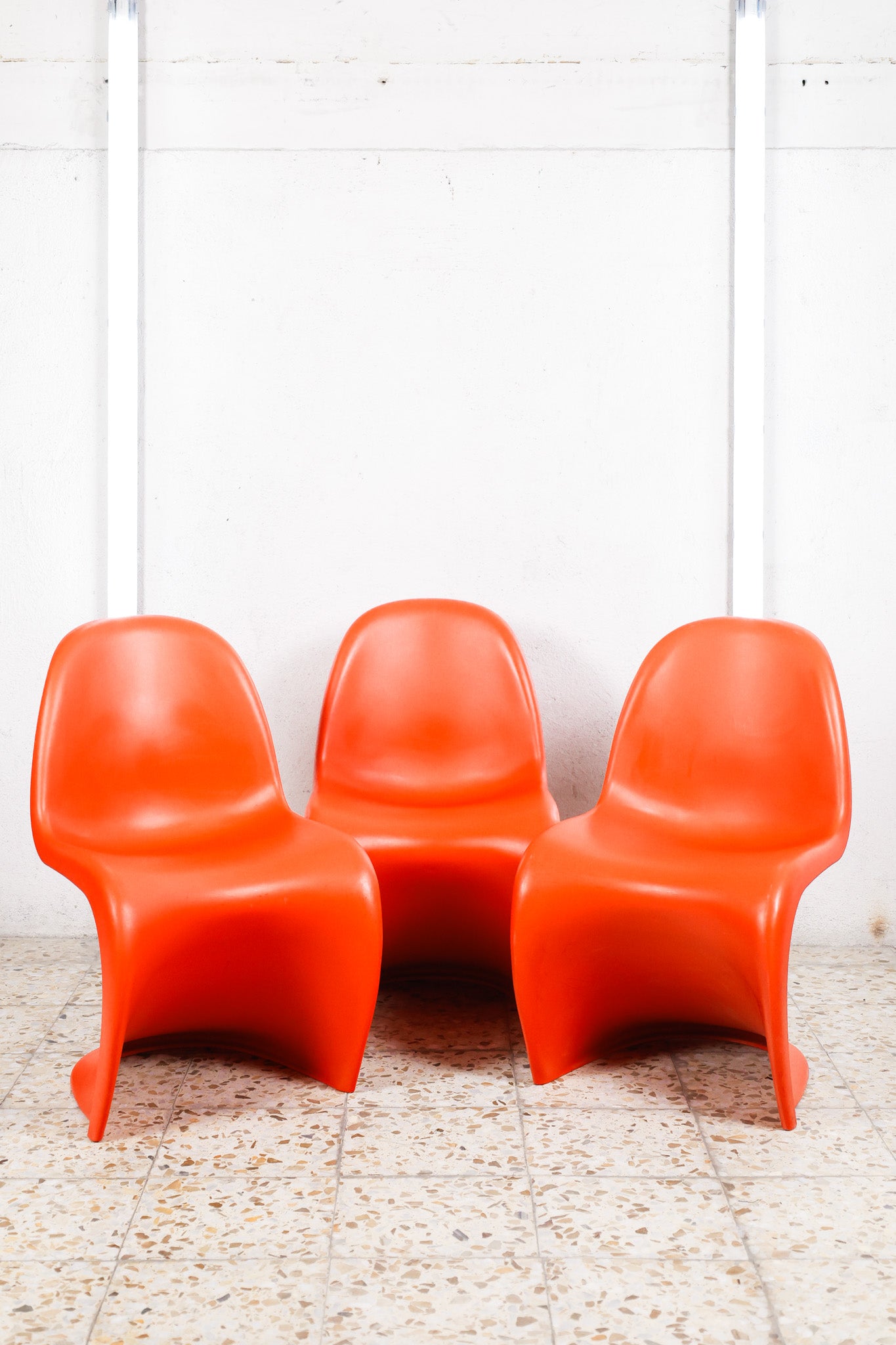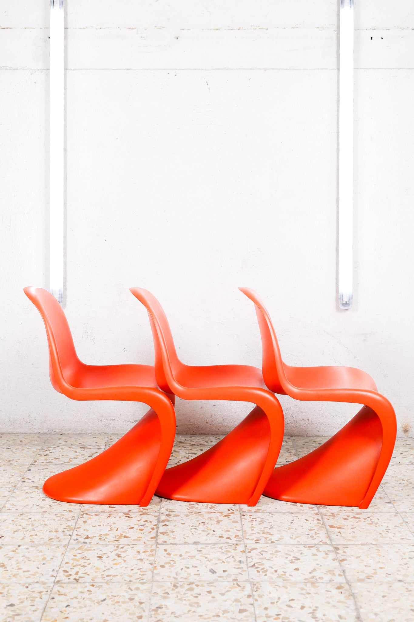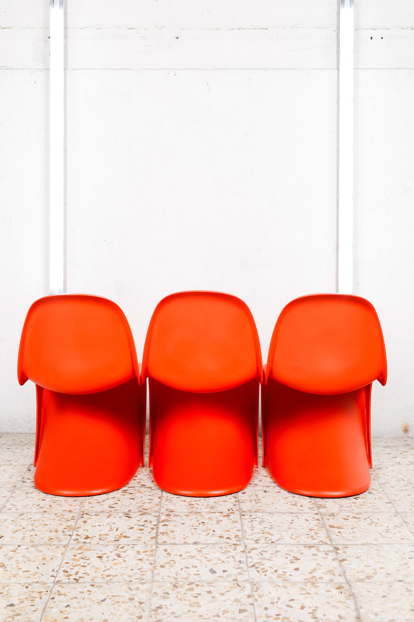 The Panton Chair by Verner Panton for Vitra is an iconic design defined by its fluid S-shaped silhouette and cantilever structure. Created in 1959 and introduced for serial production in 1967, it was the first chair made entirely from a single piece of molded plastic. Its continuous form, slightly flexible material, and sculptural presence combine comfort with a bold modern aesthetic, making it one of the most recognizable pieces of twentieth-century furniture design.