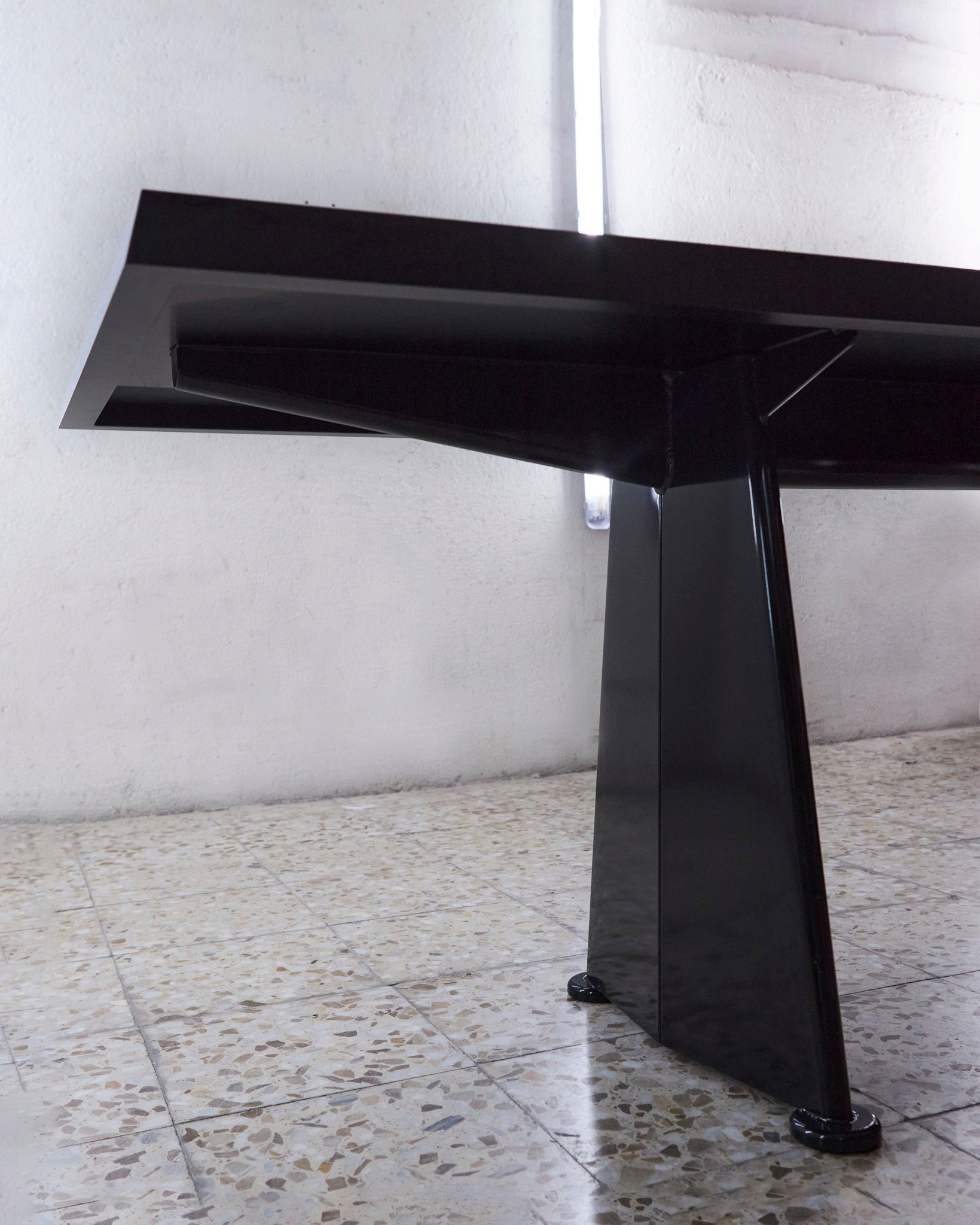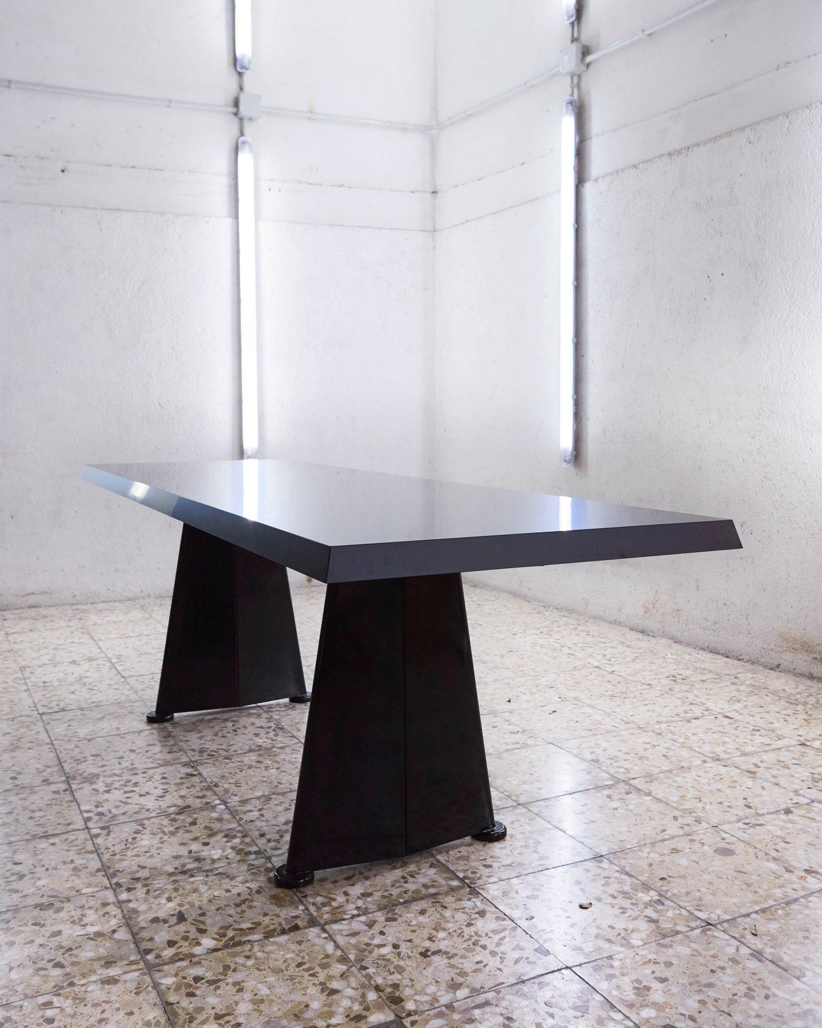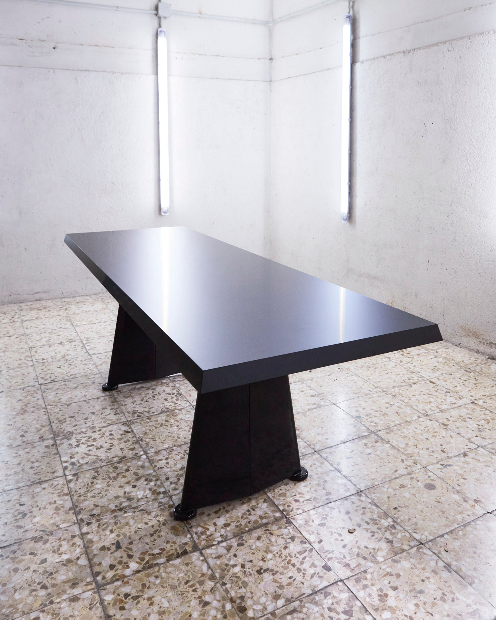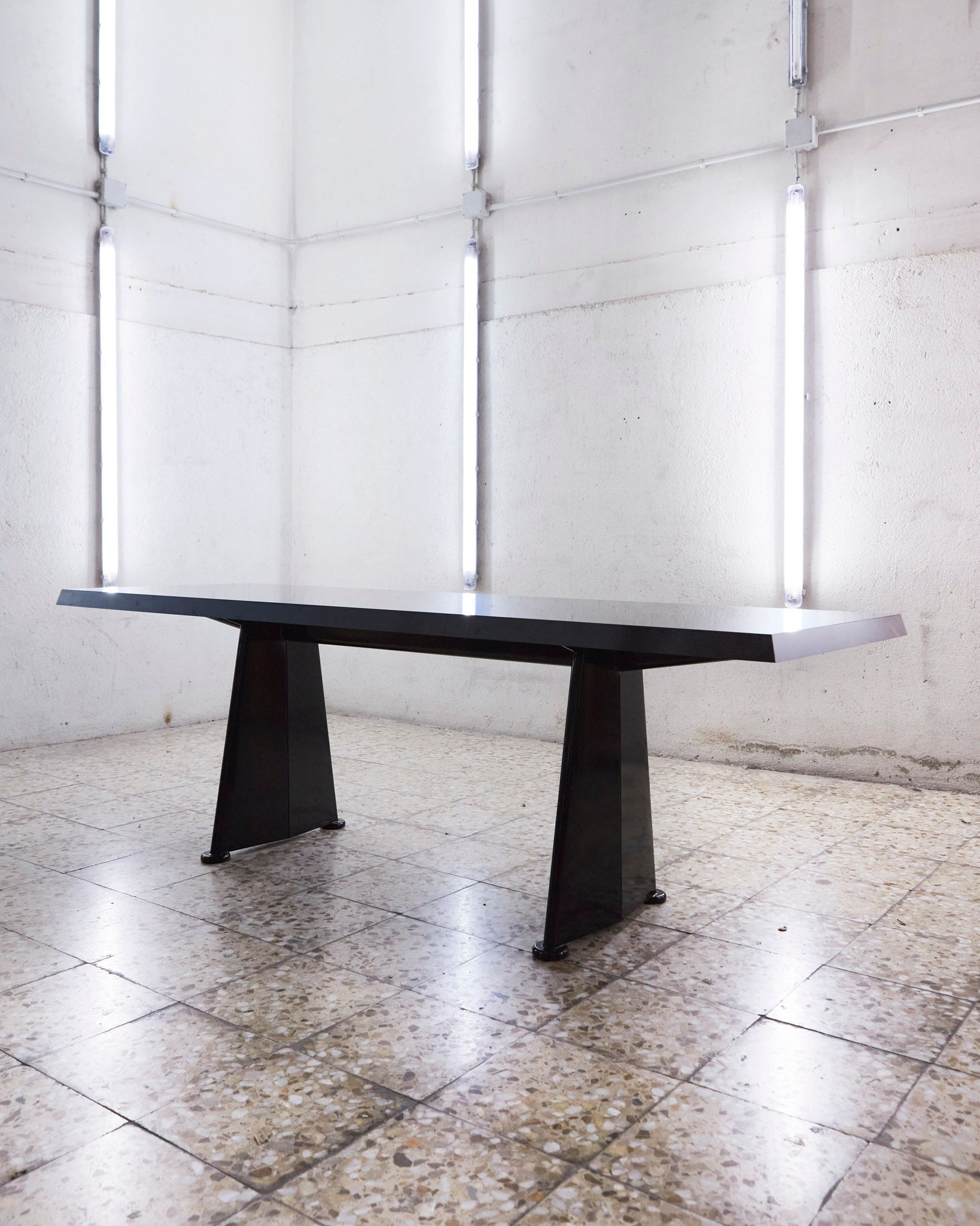The Trapèze Table, designed by Jean Prouvé in 1950, is a striking example of his architectural approach to furniture design. Originally created for the Cité Universitaire in Antony, France, the table features distinctive trapezoidal sheet-steel legs that give it both its name and sculptural character. Combining industrial rigor with refined proportions, the Trapèze Table perfectly captures Prouvé’s philosophy of uniting structure, function, and beauty in a single, timeless form.