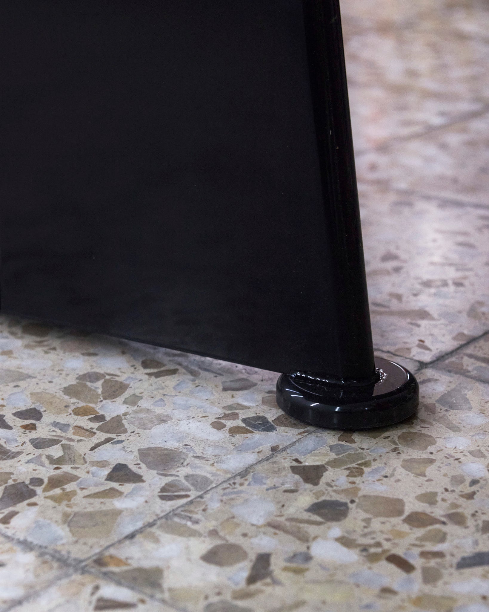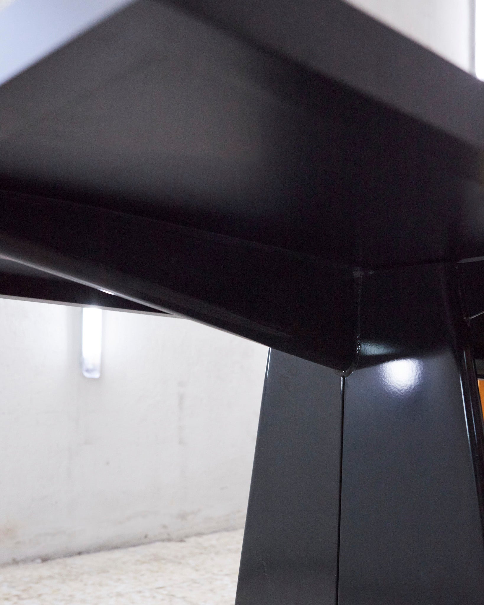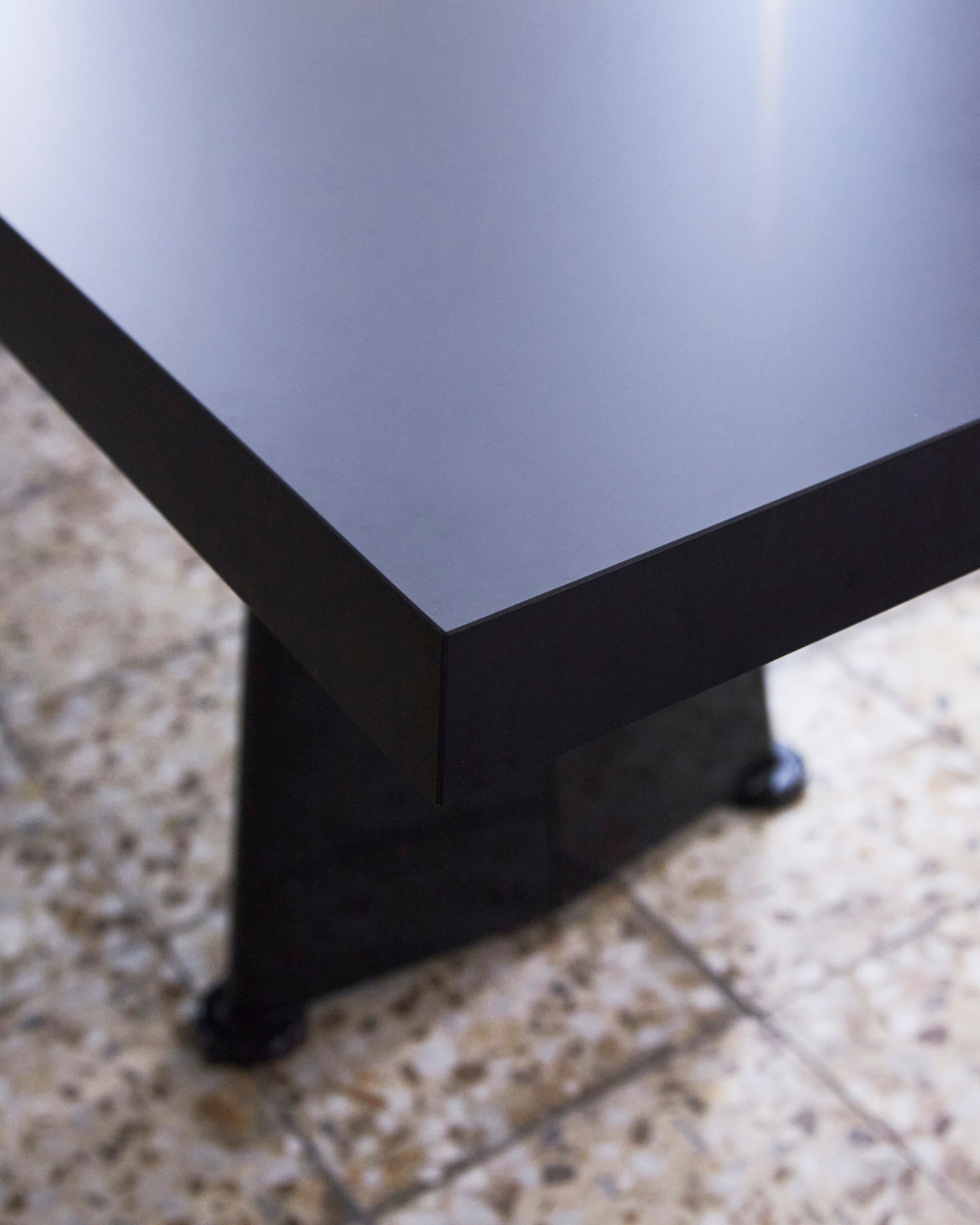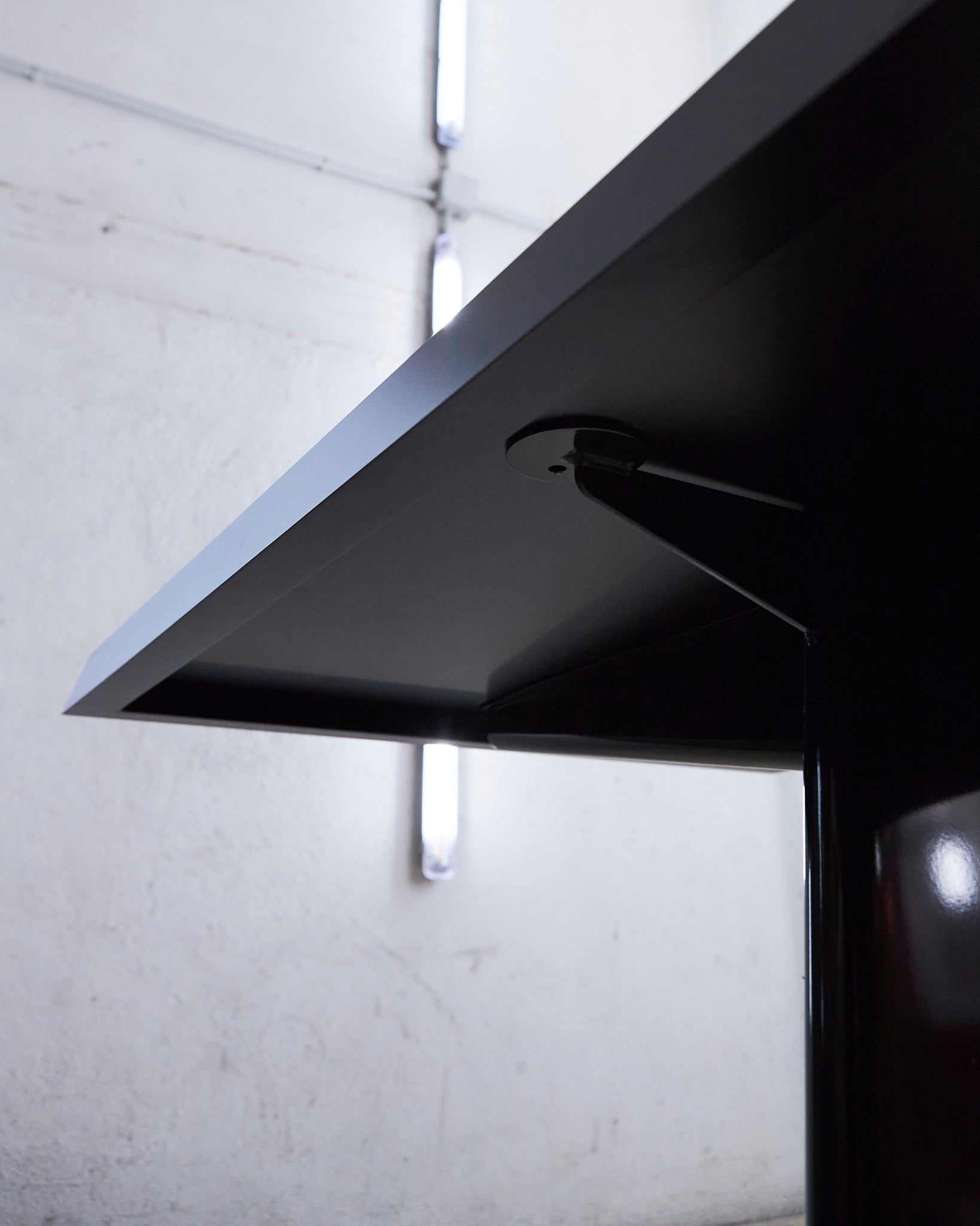 | Materials | High-pressure laminate, black surface coating base table top; bent sheet steel, powder-coated in black base |